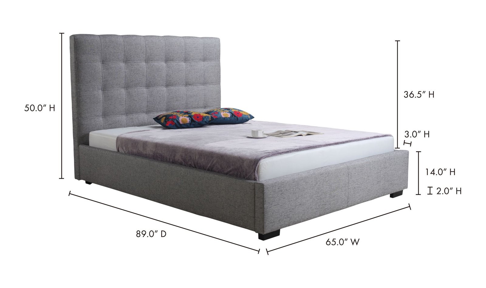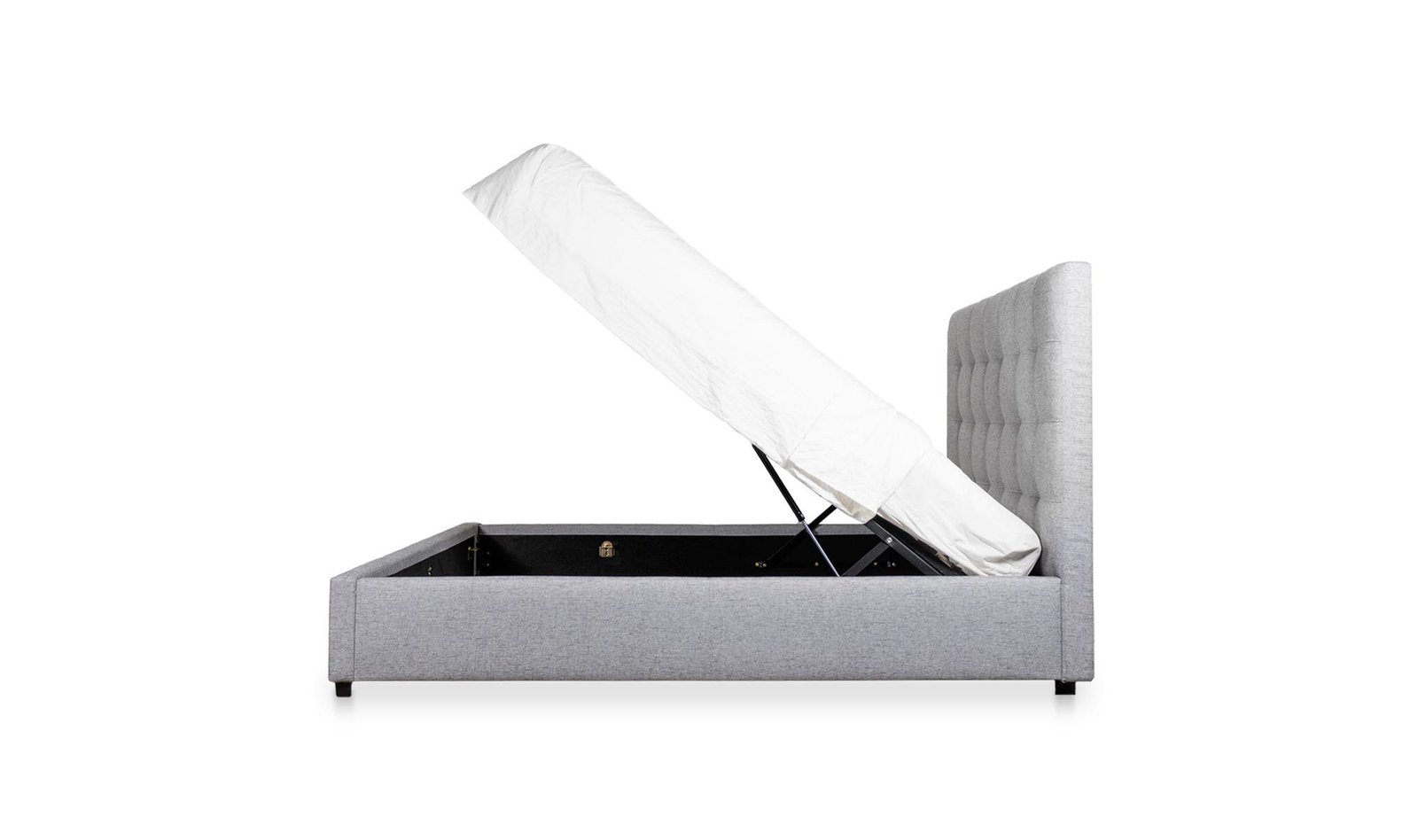Get the most out of your space with the softness of the Belle queen storage bed. Made of solid pine and featuring an ultra-soft tufted headboard this bed is the pinacle of luxury. A hydraulic system underneath the mattress lifts it up revealing a roomy storage area. The Belle makes storing your bedroom things in smaller spaces possible without compromising the size of bed you want.. Dimensions: 65.0? W X 89.0? D X 50.0? H