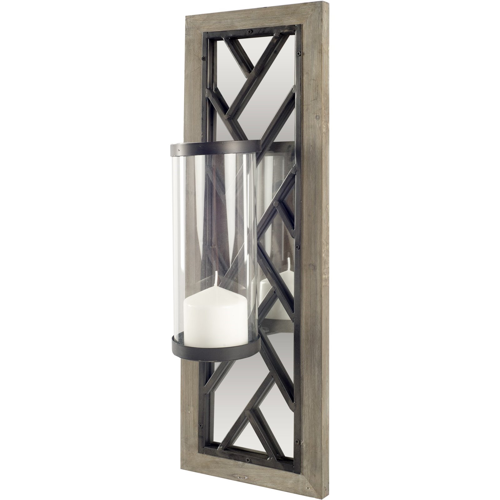 / Benji 24″H Brown Wood Frame Black Metal Accent Mirrored Wall Candle Holder