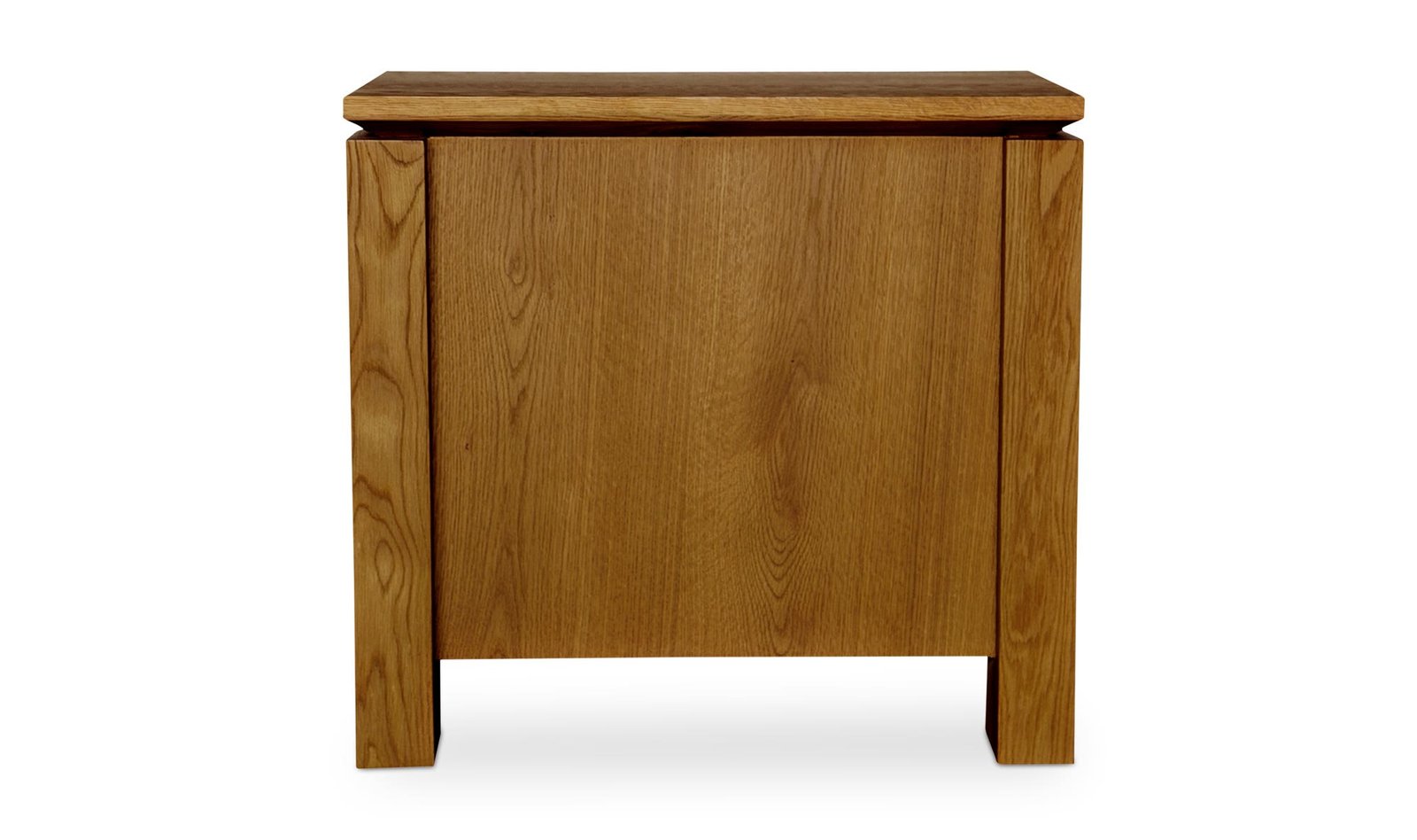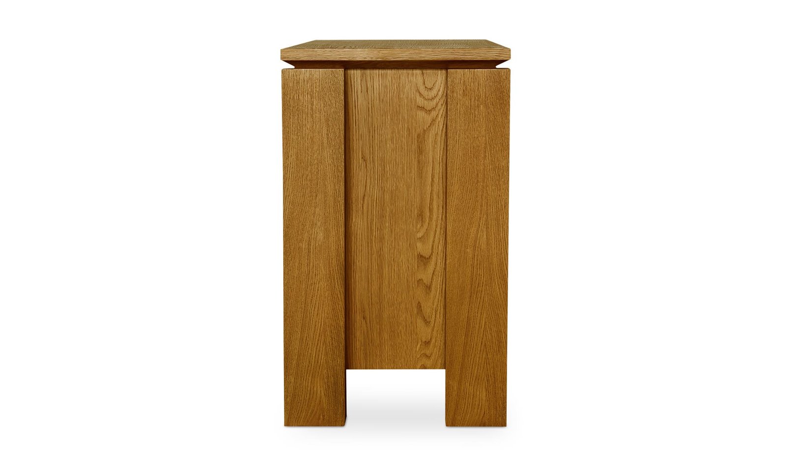 The Brook nightstand blends a blocky silhouette with a visually light undercut top that appears to float on its strong thick legs. Crafted from solid oak and clean oak veneer door fronts its mid-tone brown oak finish enhanced by wire brushing offers a rustic flair that complements various interior styles.. Dimensions: 28.0? W X 18.0? D X 26.0? H