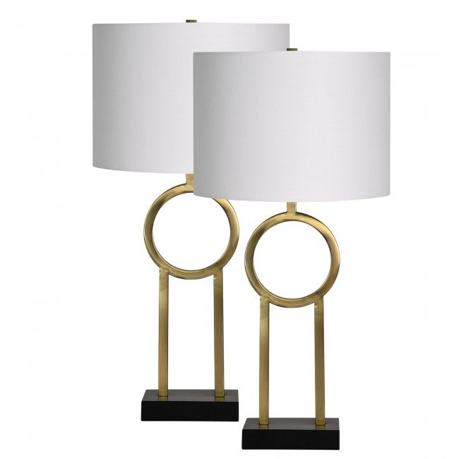 SET OF TWOTABLE LAMPIRONANTIQUEBRASS PLATEDBLACK POWDER COATEDFINISHOFF-WHITE COTTON SHADE3-WAY SWITCH MAX. 100WE26 SOCKETNet Weight: 10.47lbs.Gross Weight: 13.64lbs.. Dimensions: