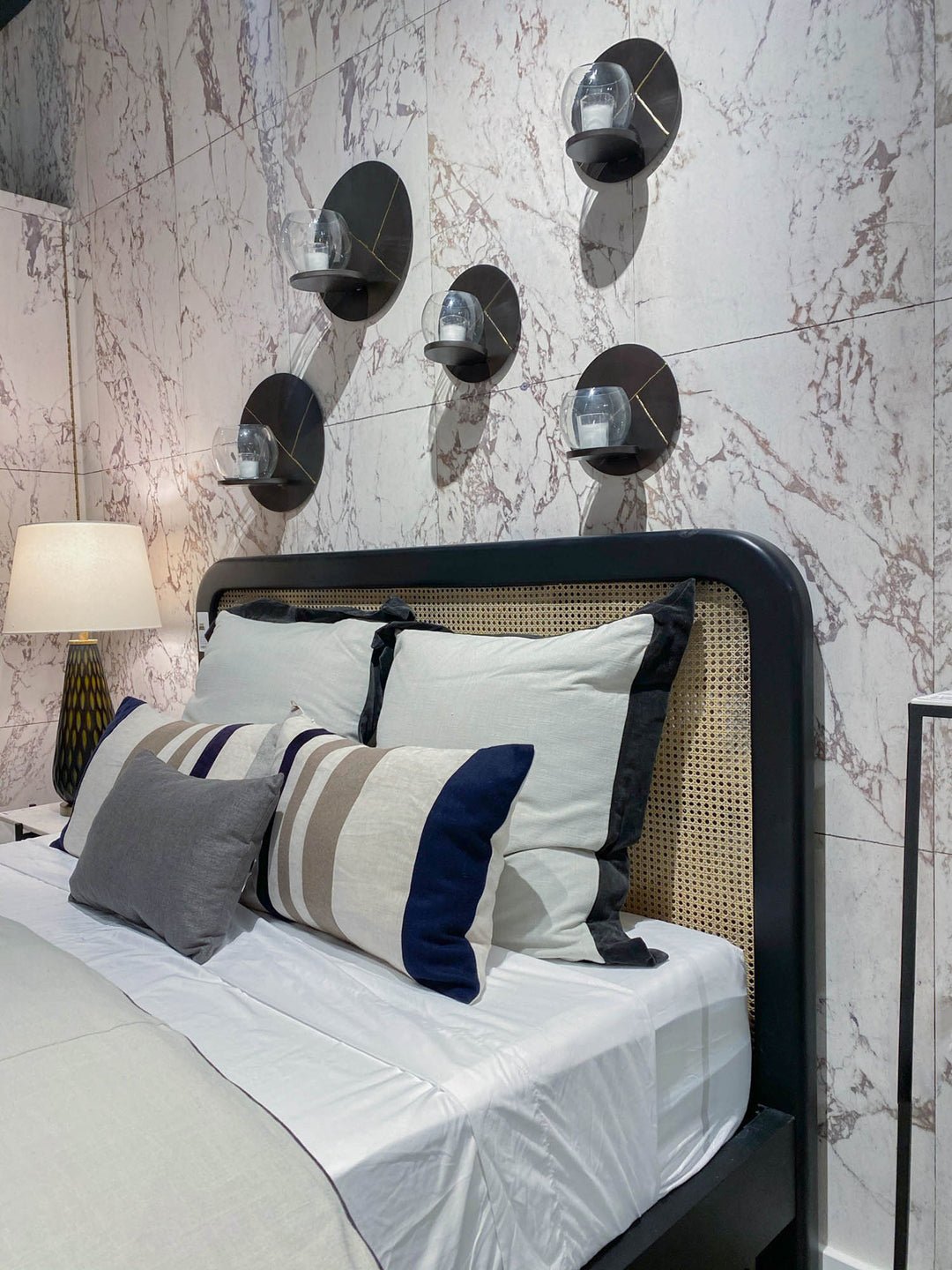 Simplicity. comfort and style all combine for this perfect addition to your home . Carefully crafted with naturally sourced mango hardwood. bamboo cane . Rustic. minimal. and bohemian aesthetic . Dimensions: 64 x 84 x 48 ; 159lbs