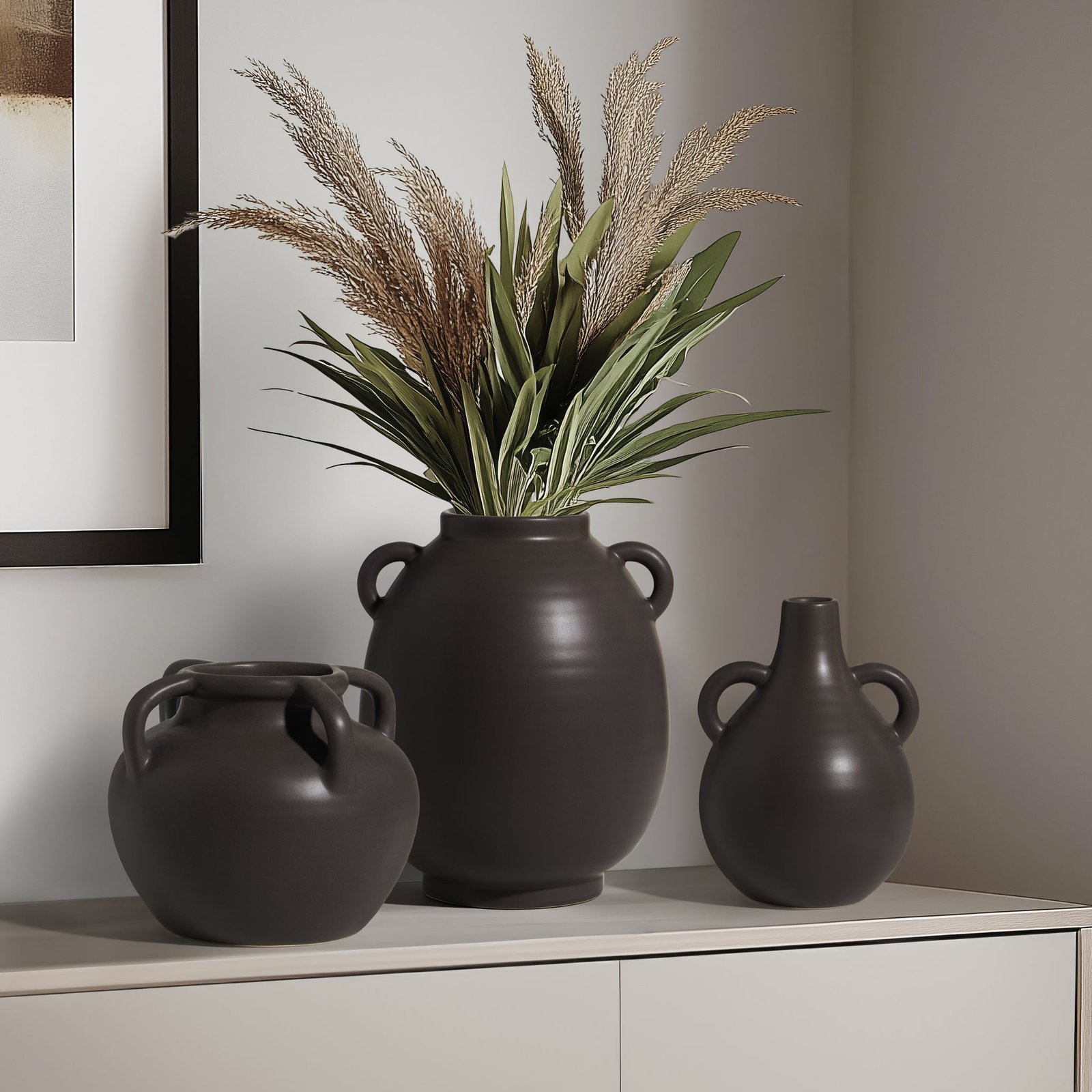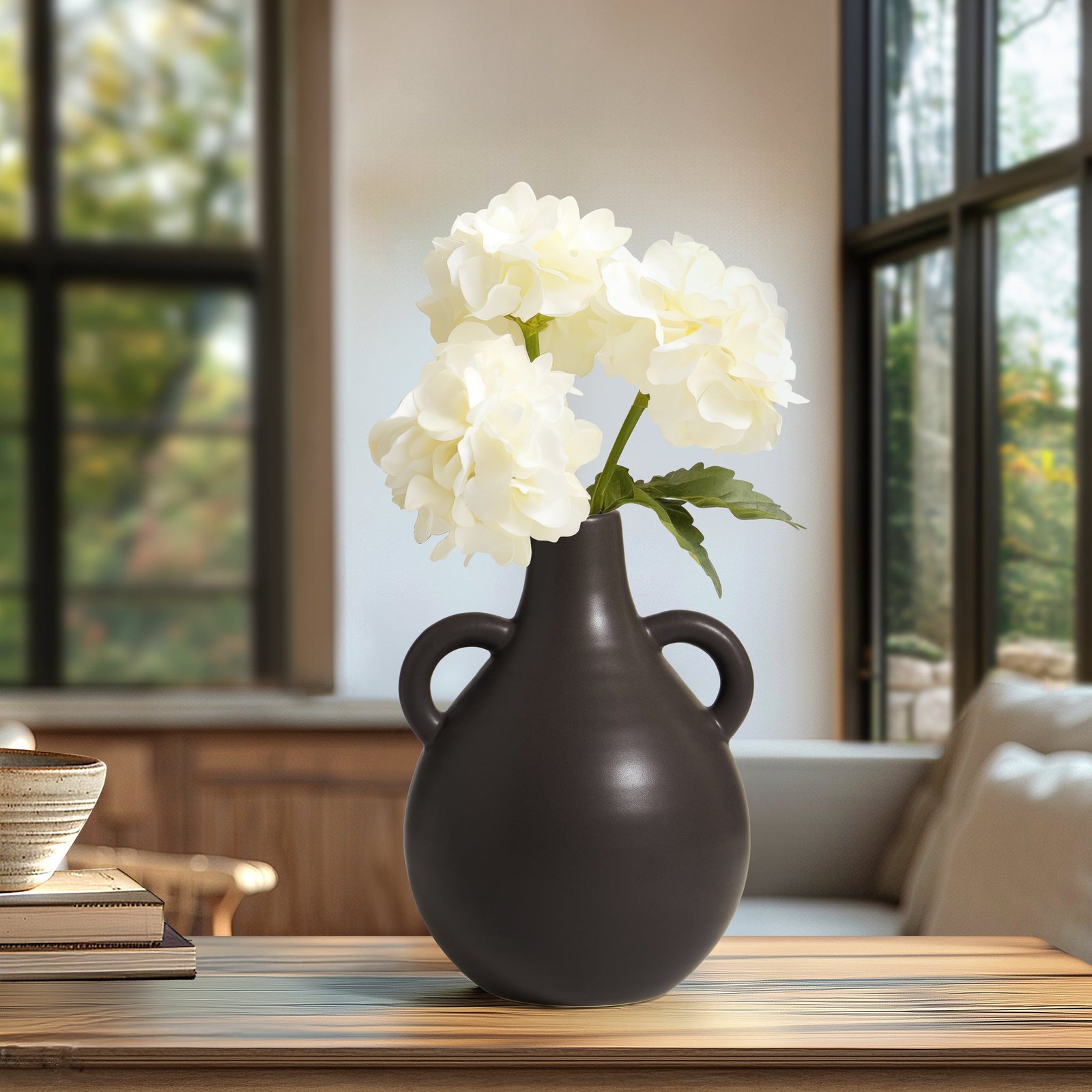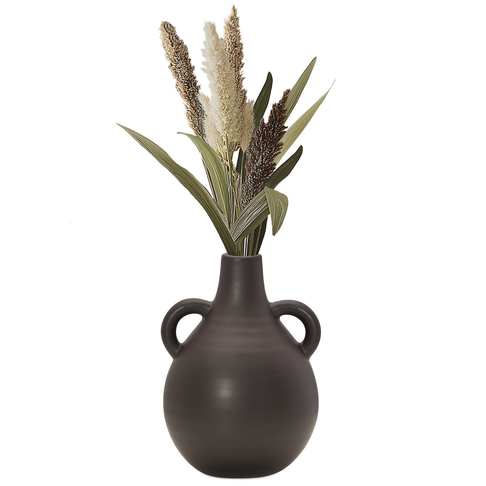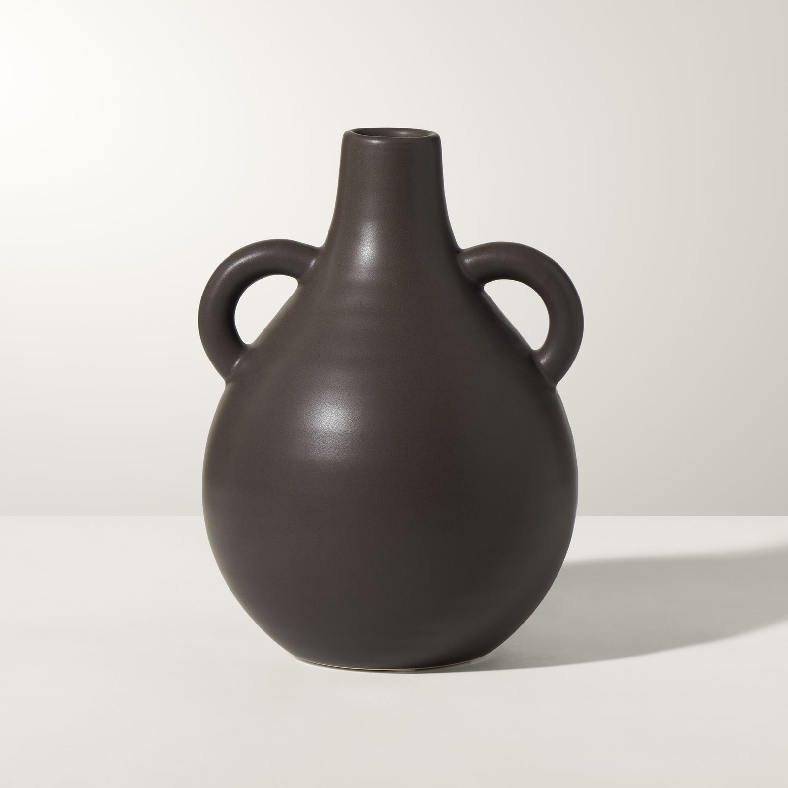 Capri Double Handle 7 Inch Tall Ceramic Teardrop Urn Vase – Matte Brown