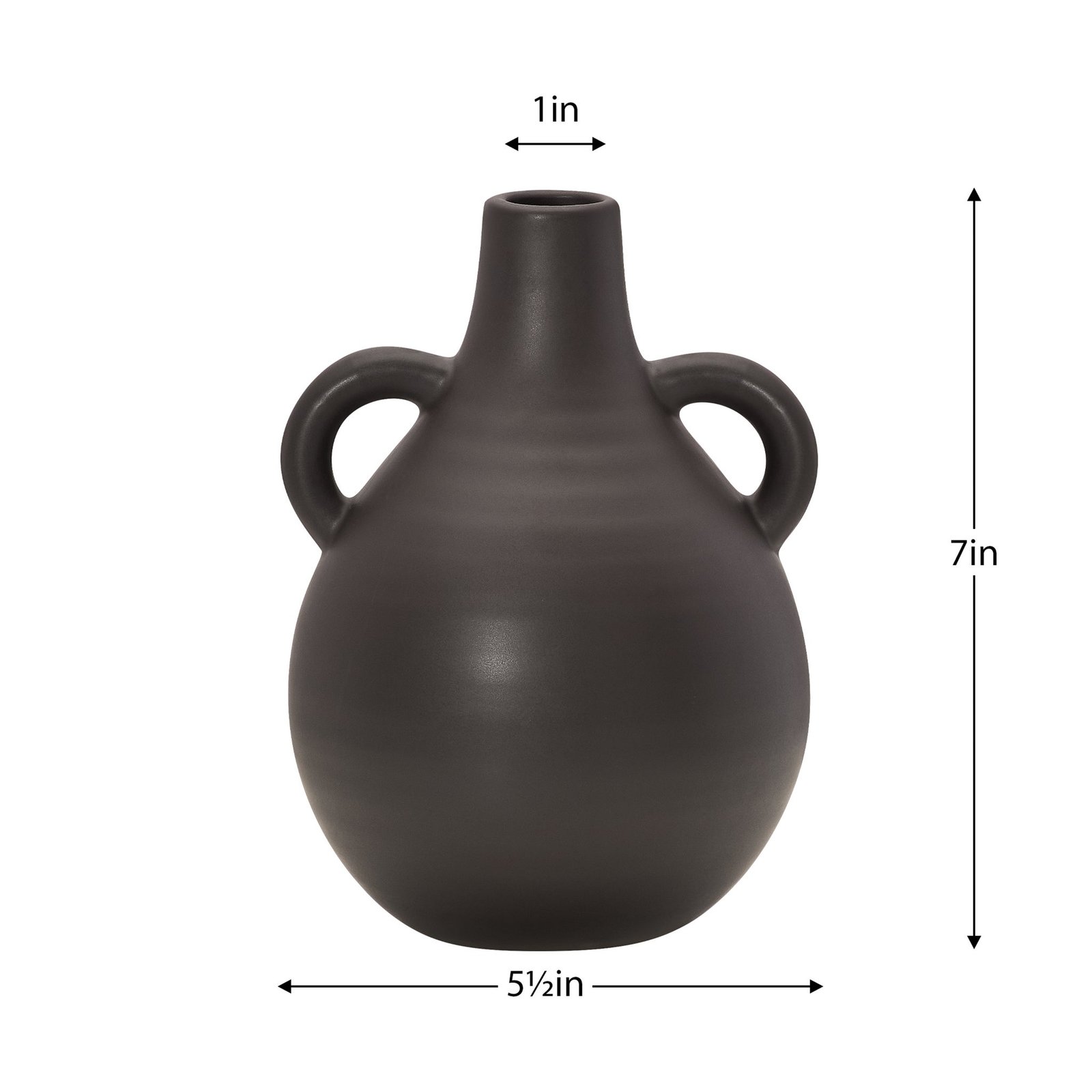 With a captivating matte finish this teardrop-shaped ceramic vase stands out with its distinctive handmade appeal and unique handles accentuating its form. Ideal for showcasing a single stem or a small bouquet its design flawlessly marries functionality and artistic expression. The matte surface adds a touch of modern elegance making this vase a standout piece that seamlessly blends into any space enhancing your decor with its individual charm. Dimensions: 5.5d x 7h”. Vase Mouth. 1