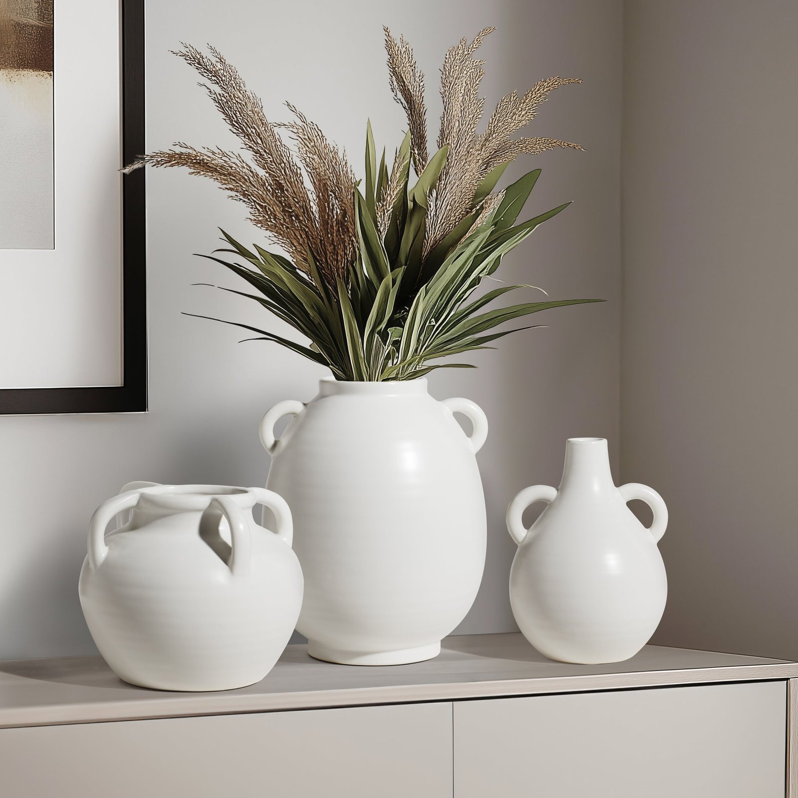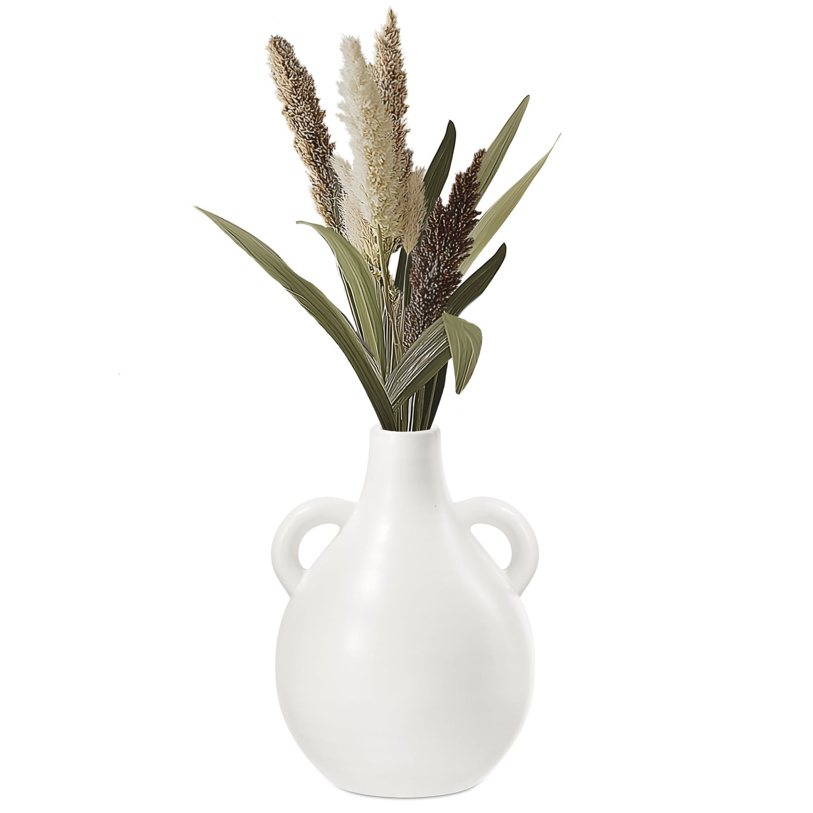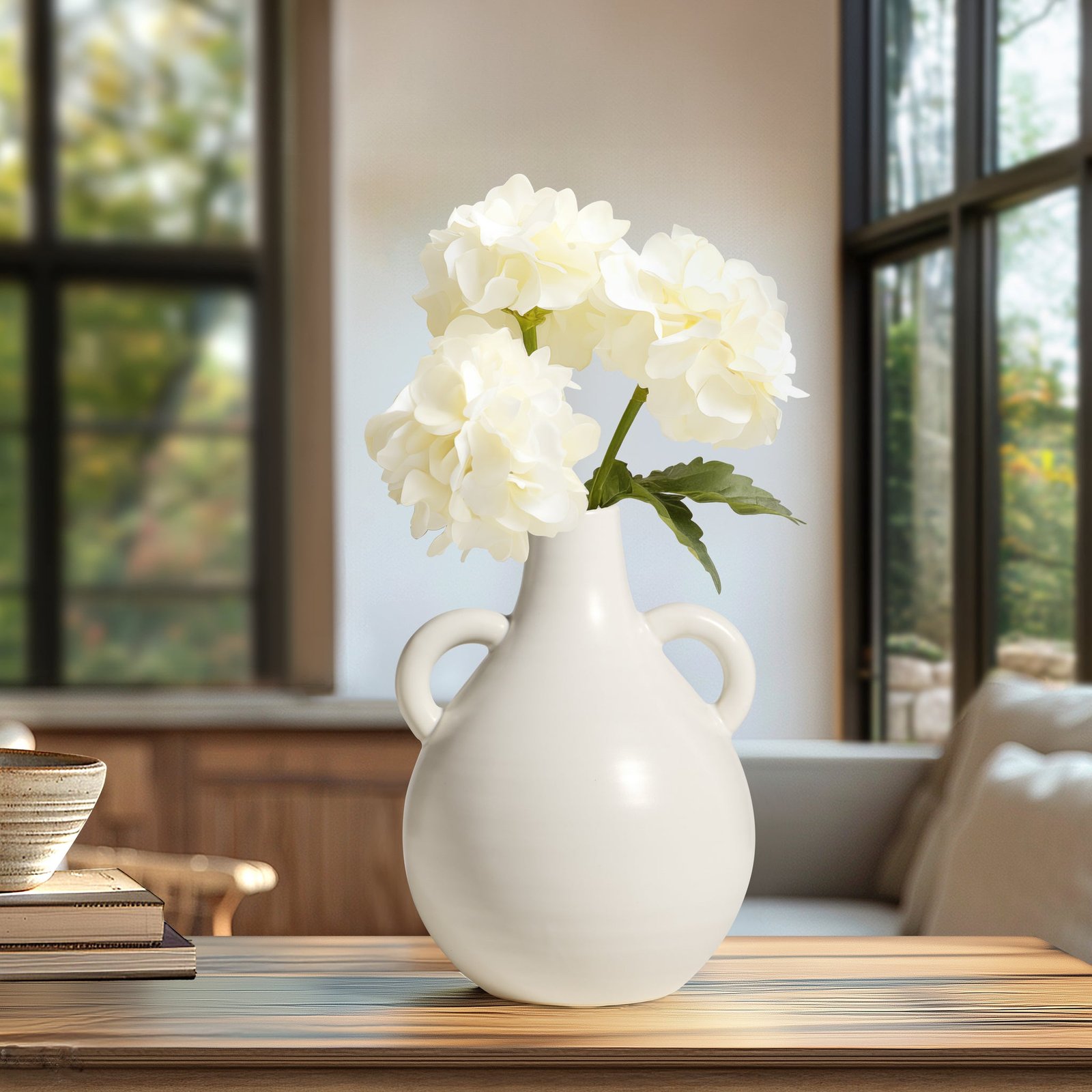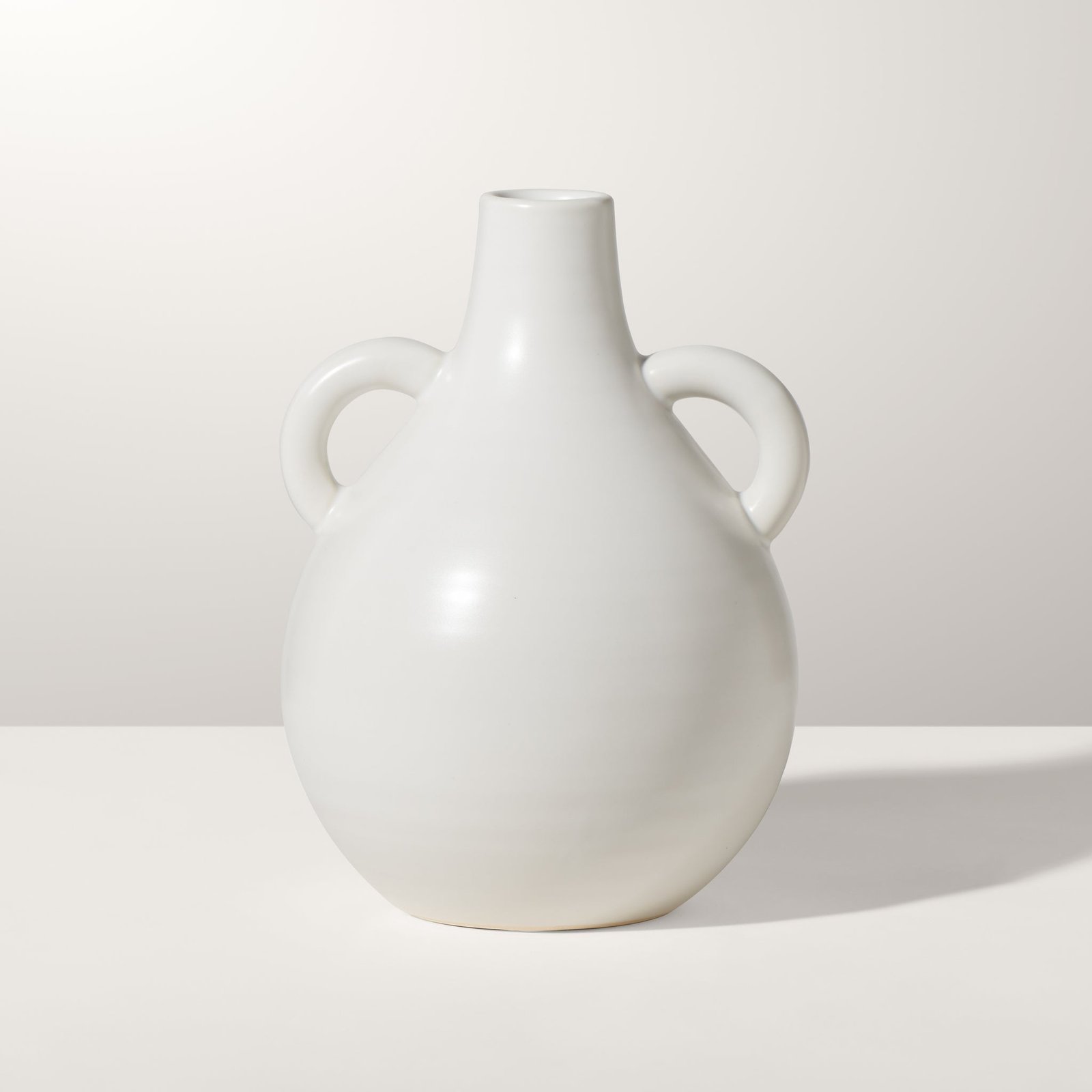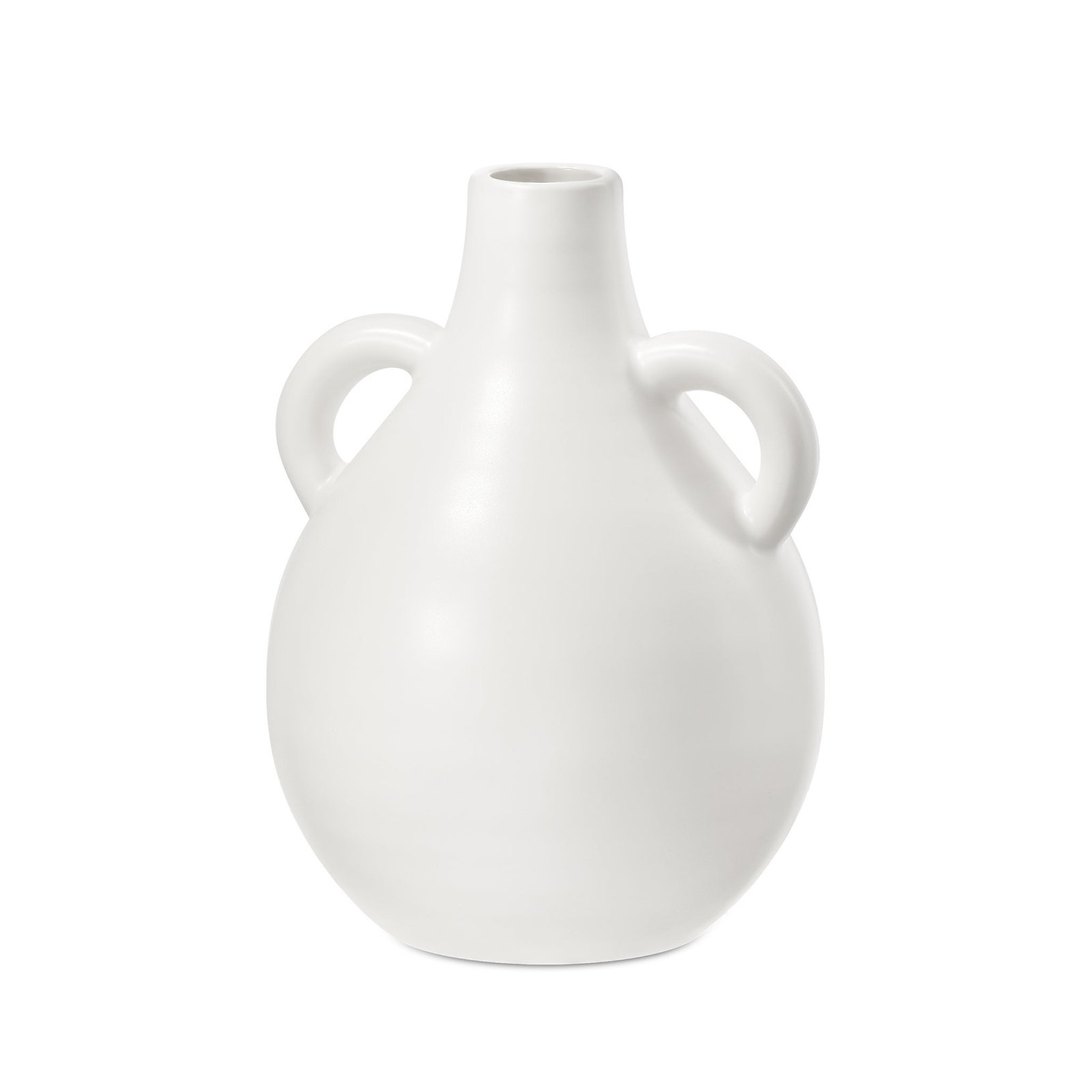 Capri Double Handle 7 Inch Tall Ceramic Teardrop Urn Vase – Matte White