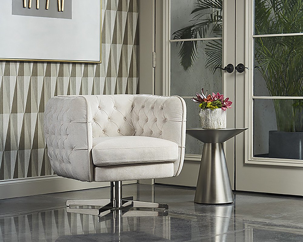 A simply stunning tapered end table. Stocked in a brushed stainless steel and brushed yellow gold finish to elevate any contemporary living or lounge space. Suitable for residential and commercial environments. Dimensions: 19″D x 19″H