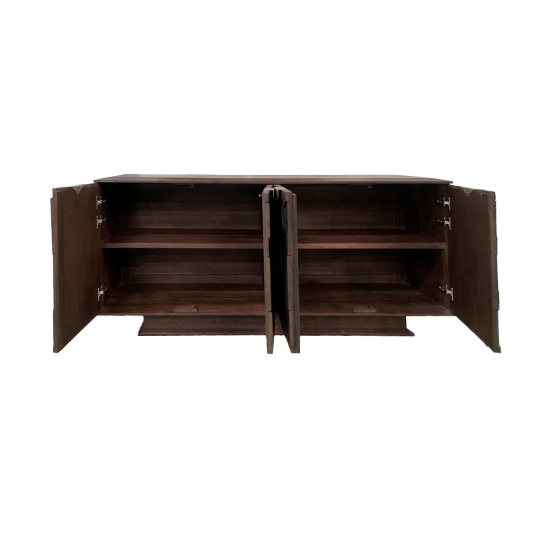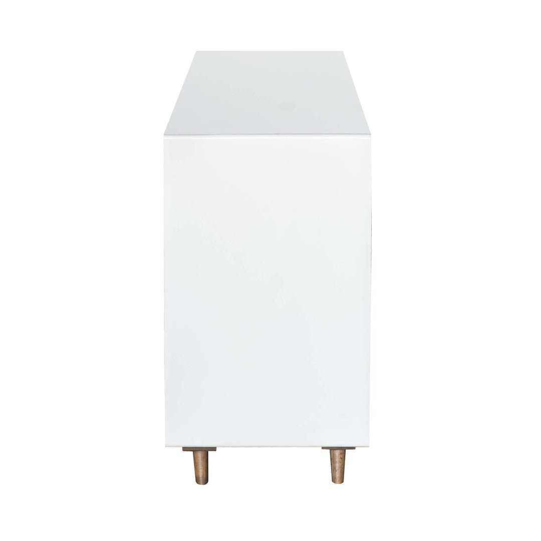 Reclaimed Pallet Wood. Wood Finish: Rustic Natural / White Lacquer. Made with reclaimed pallet wood . Beautiful white lacquer finish . 1 cabinet and 4 open shelves for additional storage . Dimensions: 71 x 18 x 31 ; 146lbs
