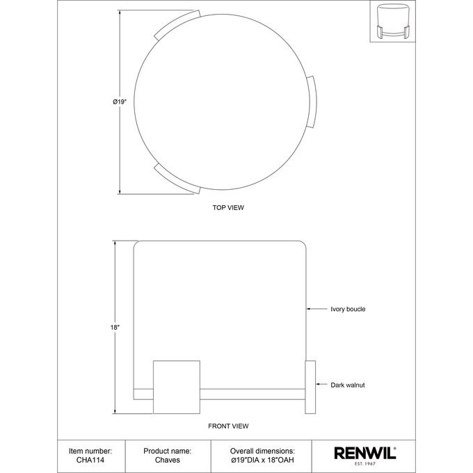 OttomanBoucle IvoryWood VeneerDark Walnut FinishNet Weight: 11.7lbs.Gross Weight: 16.1lbs.. Dimensions: