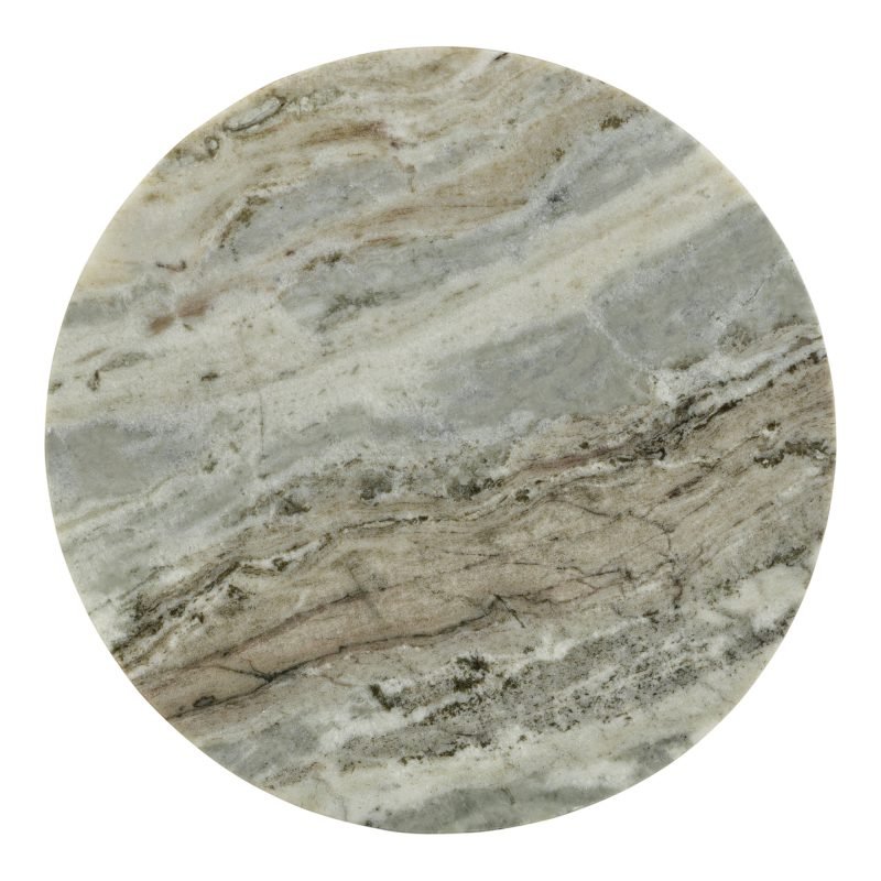 A generous slab of polished marble sits atop a solid iron frame to create the Cirque accent table. Everyone needs a stylish side table that fits perfectly in any alcove. This one flaunts style and durability all while being the perfect spot for your morning coffee.. Dimensions: 18.0? W X 18.0? D X 22.0? H