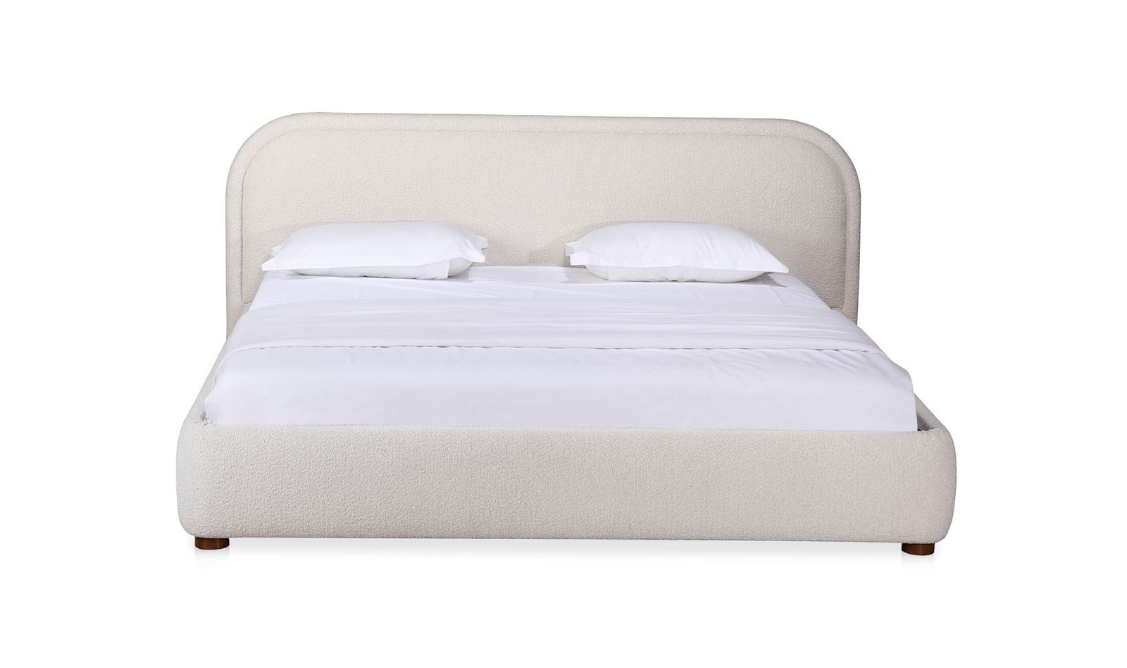 A sanctuary of unparalleled bliss and rejuvenation the Colin king bed is thoughtfully designed with a harmoniously curved frame and headboard enveloped in sumptuous velvet upholstery. This exquisite piece exudes an air of serenity with its gentle lines and rounded corners complemented by the subtle exposed wooden post legs.. Dimensions: 85.5? W X 86.0? D X 40.0? H