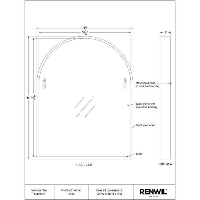 Enhance the appeal of any room with the exquisite Cove 46″ Tall Arch Rectangular Mirror in Matte black. Crafted with a high-quality and durable cast aluminum frame this mirror reflects a sophisticated arch shape that adds timeless and elegant charm to any space. With a D-Ring hanging system installation becomes conveniently hassle-free. Optimized for easy vertical hanging it offers effortless display.