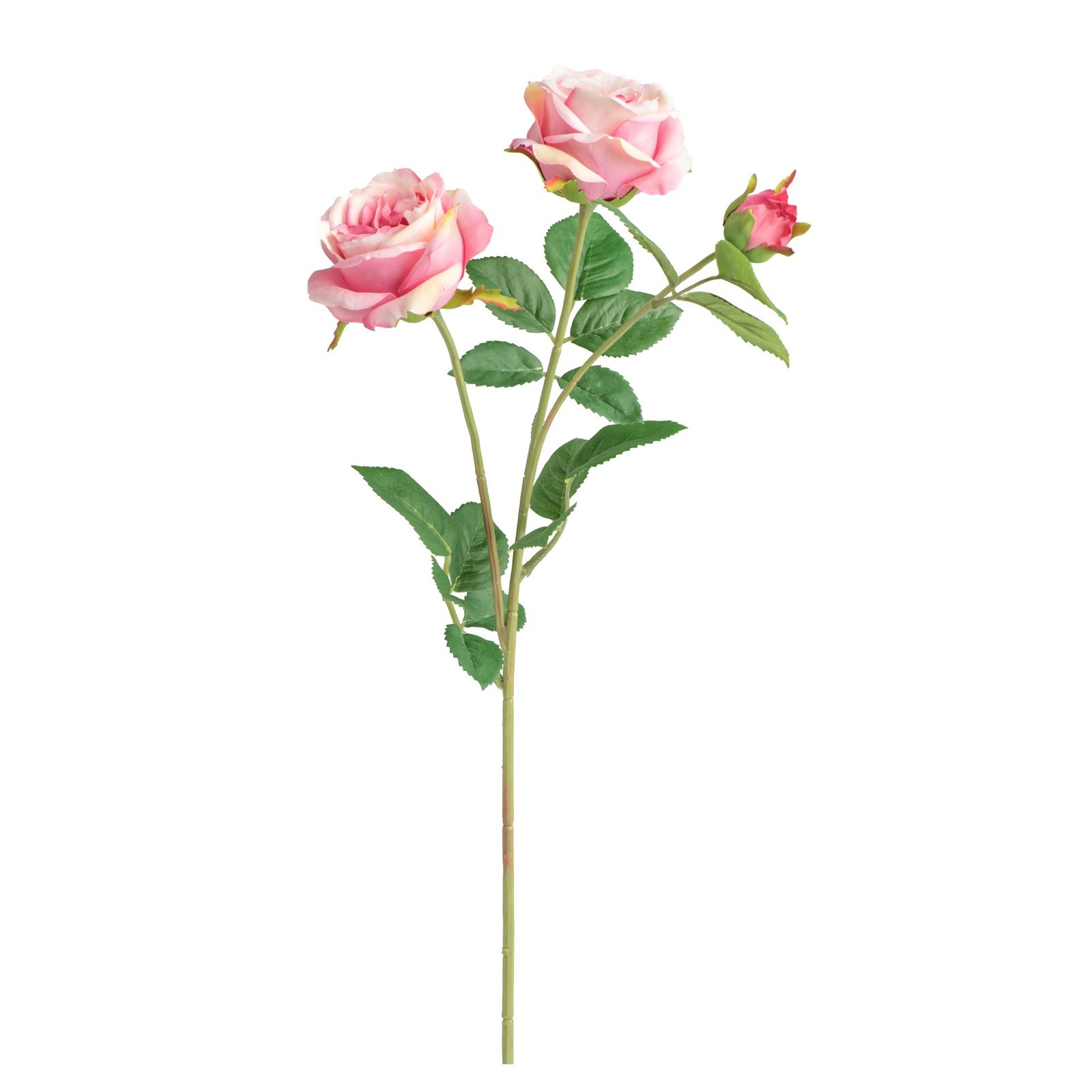 Add a touch of romance with this faux floral blooming rose stem. With 2 full blooms and 1 bud these are ideal for designers and stagers or for anyone looking for a lasting floral statement. Use as part of a larger bouquet or on it’s own in your favorite vase. Perfect for weddings or other events! Dimensions: 24L”. Blooms. 1 – 3″ diameter