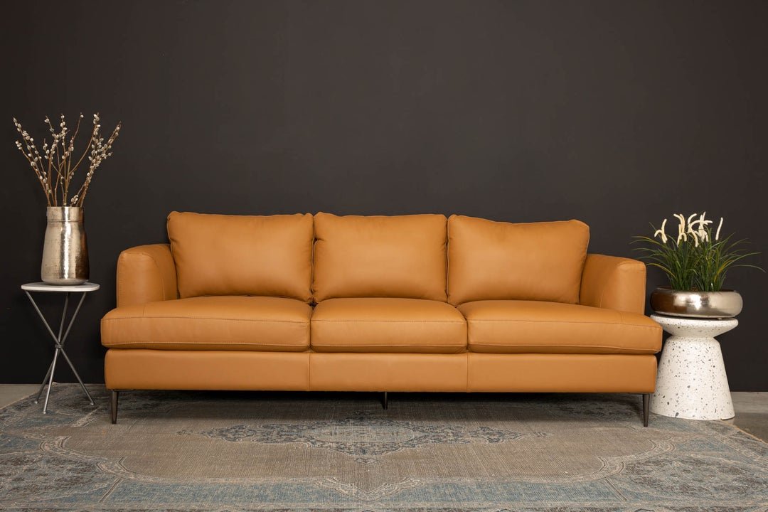 Designed with relaxation in mind . Slender legs provide style and stability . Well stuffed cushions for max comfort . Dimensions: 92 x 40 x 28;162lbs