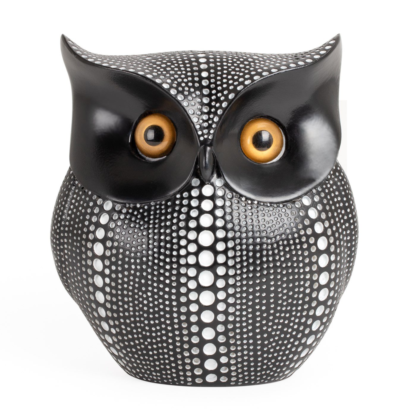 This charming resin owl figure features a painted debossed textured dot pattern to highlight its modern form. This whimsical decorative accent makes a fun yet bold statement when perched on a shelf or table in the living room or bedroom. Place next to your favorite potted plants to create a charismatic indoor garden. A delightful way to bring the joy of the outdoors in and a great gift for any owl enthusiast. Dimensions: 5.5 x 3.25 x 6h