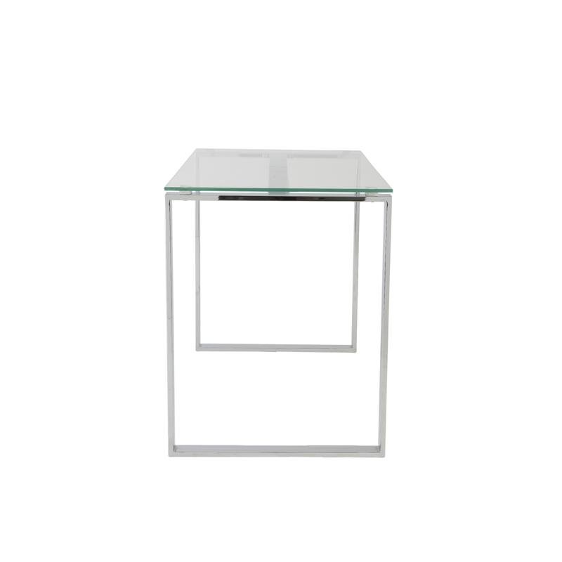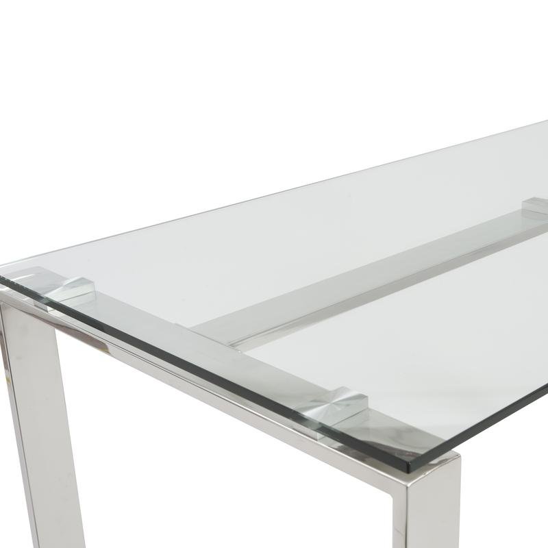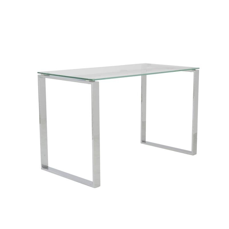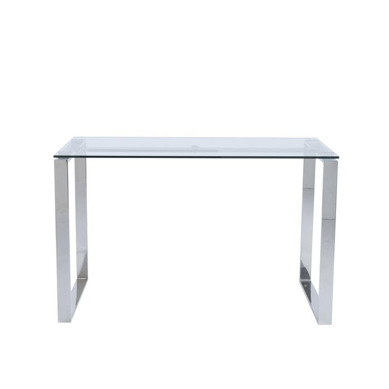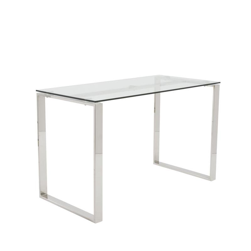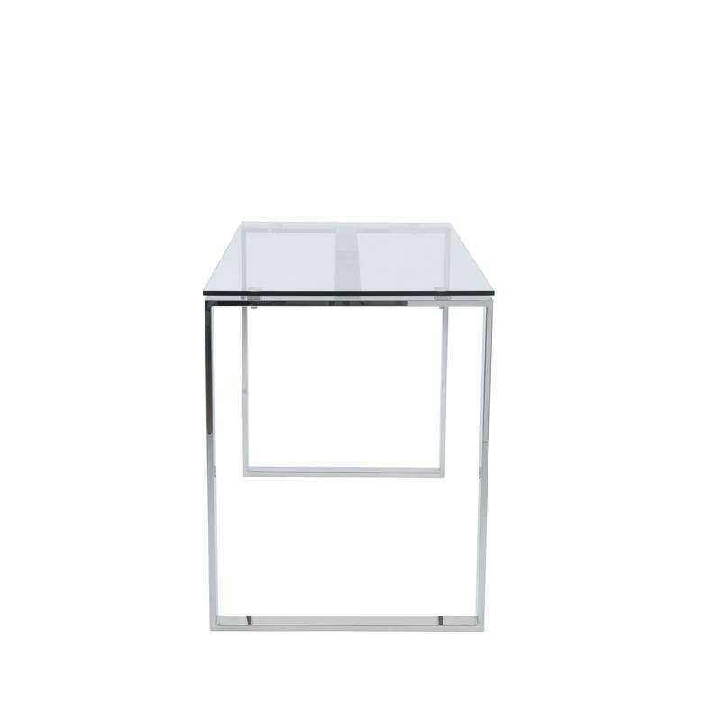 Diego Desk in Clear Glass with Polished Stainless Steel Base