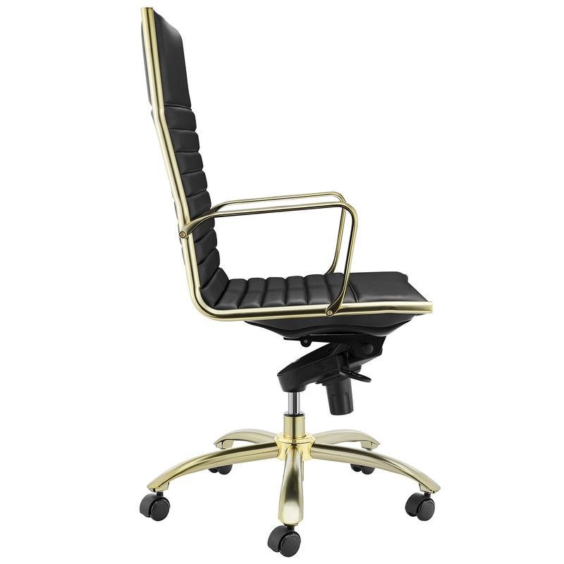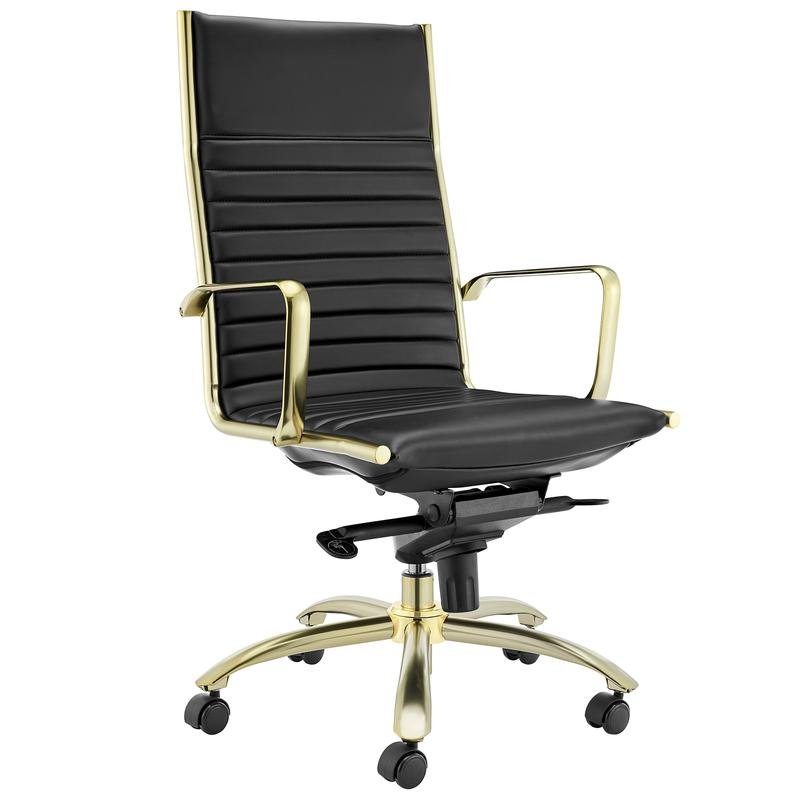 Dirk High Back Office Chair in Black with Matte Brushed Gold Base