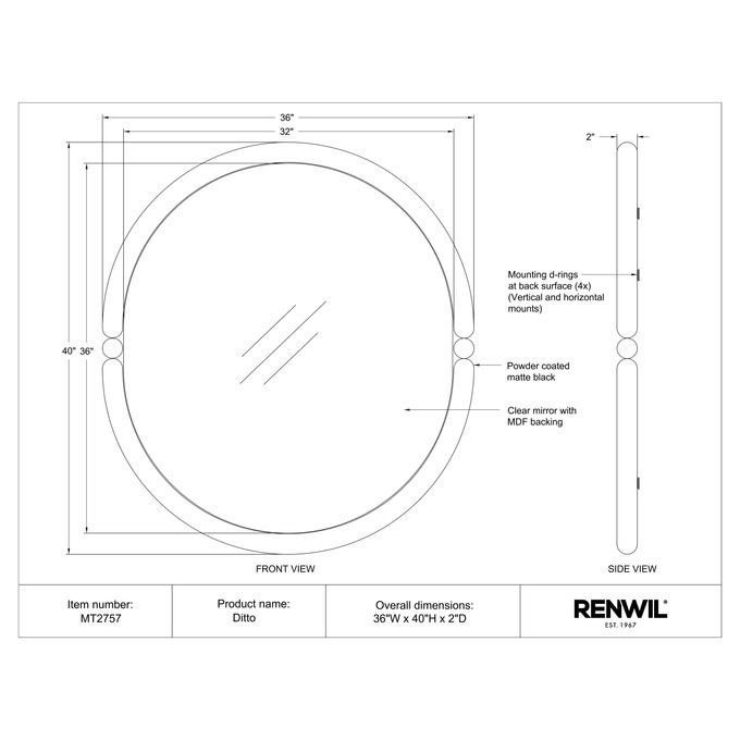 Wall MirrorIronPowder Coated Matte Black Finish2-Way HangingNet Weight: 41.5lbs.Gross Weight: 53.1lbs.. Dimensions: