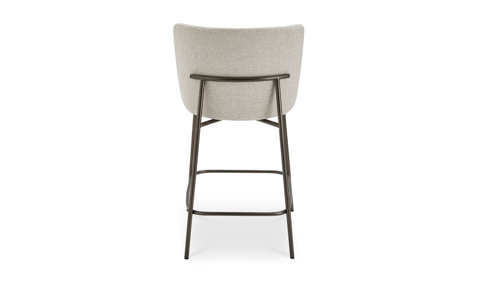 The Early counter stool is an elegant fusion of minimalist design and comfort that features a slim metal frame in a blackened bronze finish. Its seat and comfortably curved back are upholstered in durable easy-to-maintain Performance fabric. It complements any dining setting especially alongside wooden tables presenting a clean cohesive look that invites sophisticated ease.. Dimensions: 21.7? W X 23.4? D X 37.4? H
