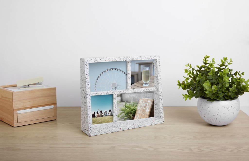 Umbra Edge Picture FrameDisplay your photos in style with this unexpected twist on the typical desk frame. Edge is a modern picture frame featuring asymmetrical angles that will draw the eye to your photo. Showcase your photos of special memories vacations and loved ones in a modern photo frame that is sure to impress. Available in multiple finishes and a variety of sizes Edge stands horizontally or vertically. Edge?s practical design features easy opening tabs on the back allowing you to conveniently load and update your favorite photos for your desk bookshelf or bedside table. Dimensions: 5X7″(13X18cm)L x 5.75″(15cm)W x 2.5″(6cm)H