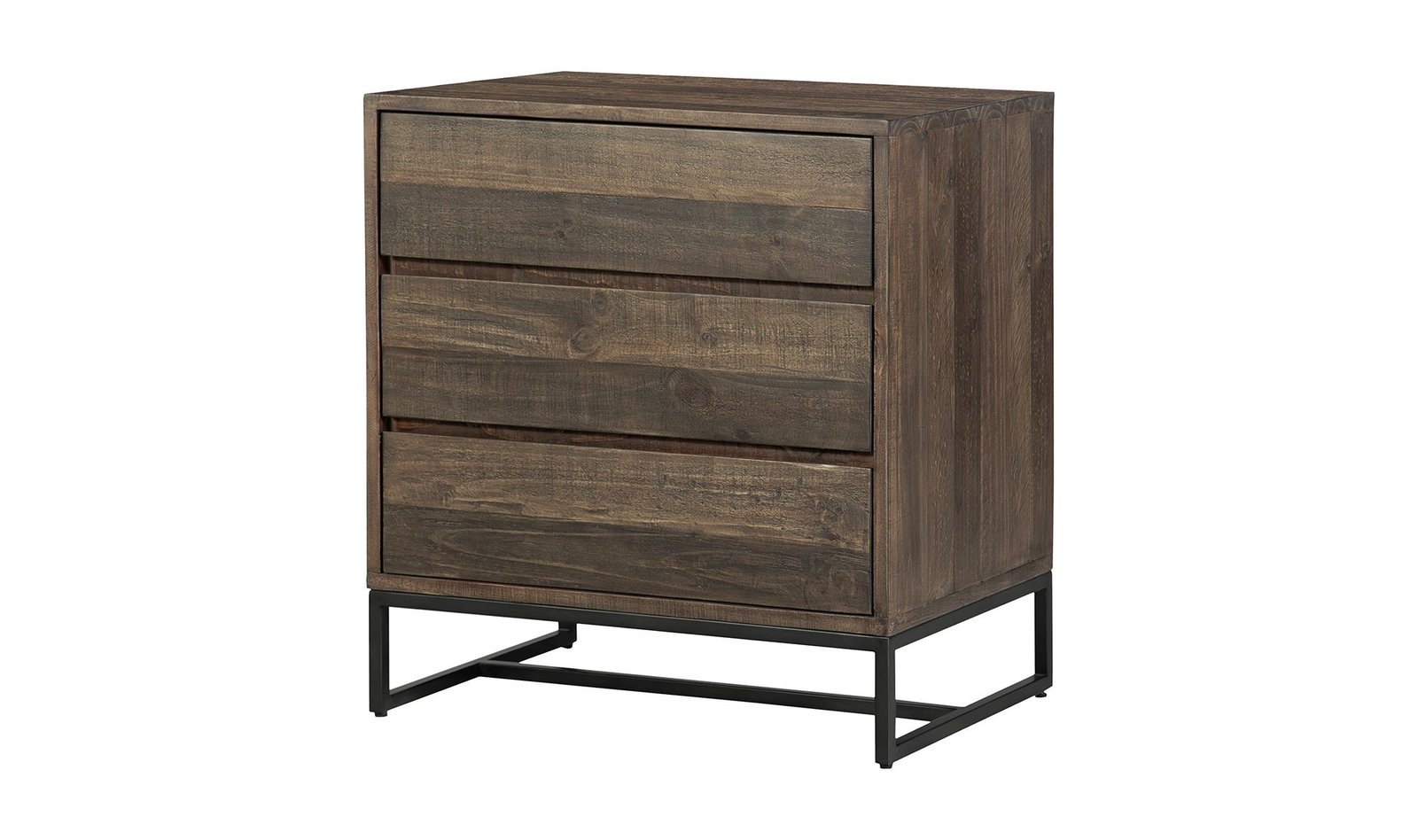 With a uniform look organic feel and plenty of storage the Elena 3 drawer chest features clean lines and industrial detailing while allowing its solid pine wood construction to take center stage. A stainless steel base and three spacious drawers make this an enduring storage essential.. Dimensions: