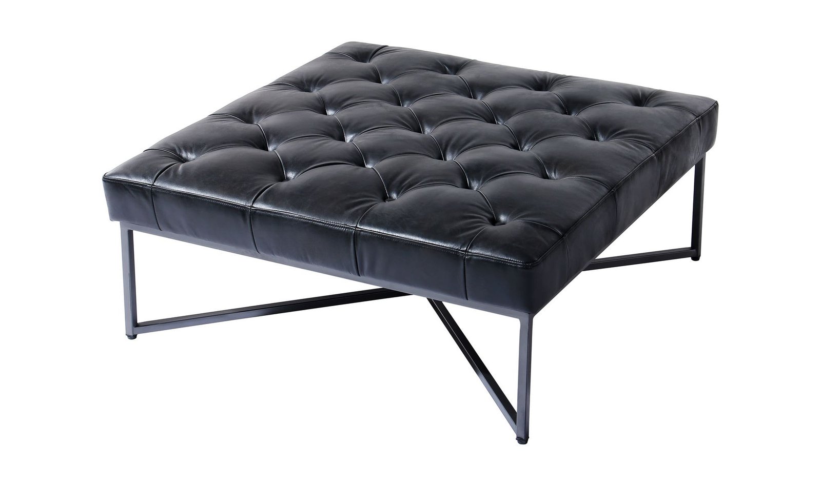 Nothing says modern like multi-purpose. A subtle and strong contemporary-modern design helps the Thad ottoman bring bold flair to your living room. With a low profile and large build its roomy design means Thad is perfect for those in need of more tabletop space?or even an occasional seat. A pine frame gives this ottoman support while gentle foam cushioning gives it a comfy softness making it perfect for guests to put their feet up. Tufted top-grain buffalo leather upholstery in black offers timeless style. An ottoman that owns the space it occupies while bringing maximum versatility.. Dimensions: 40.0? W X 40.0? D X 16.0? H