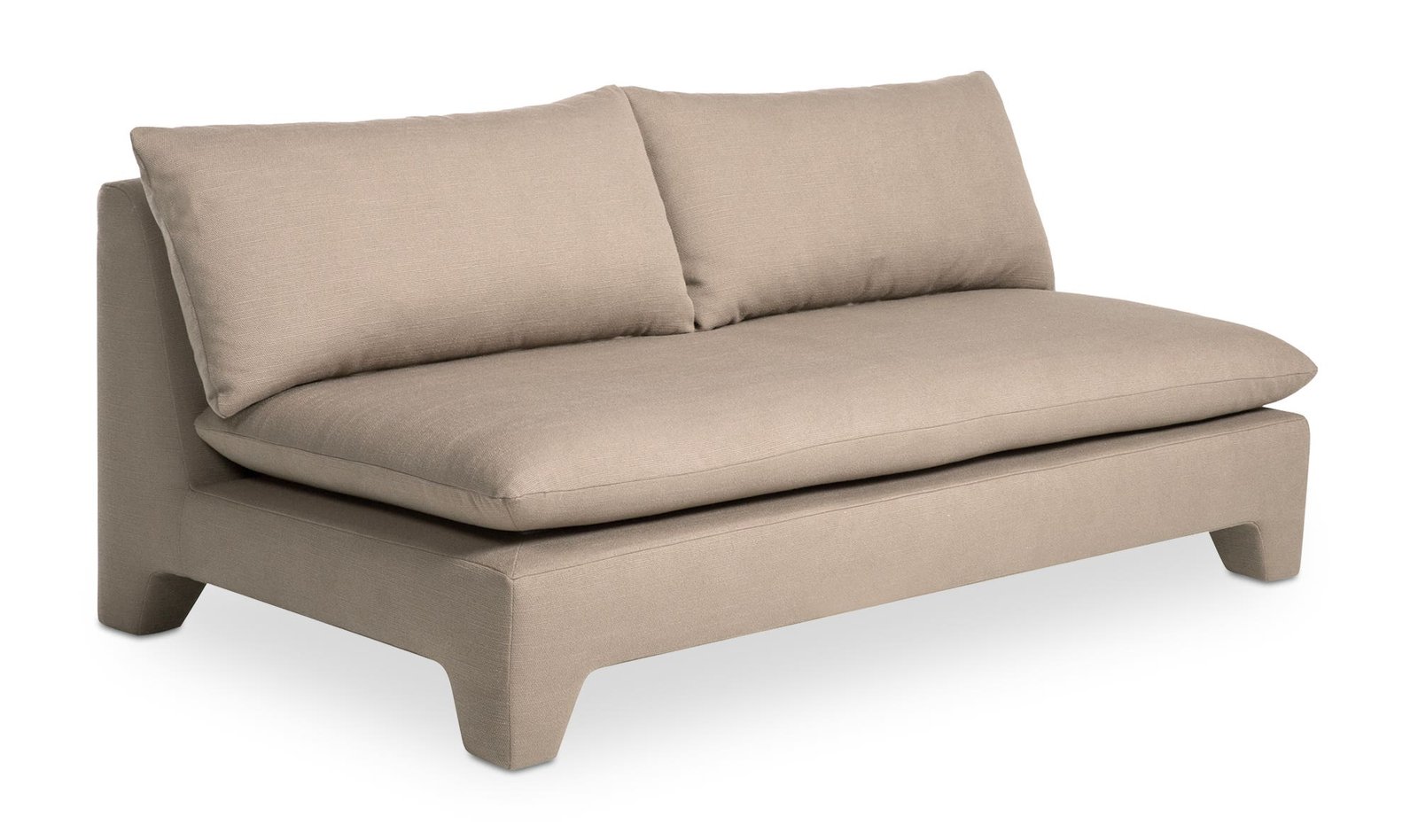 The Estelle sofa seamlessly blends vintage inspiration with a contemporary approach pairing its armless silhouette with fully upholstered padded legs. A sink-into seat brings the plush comfort of Dacron fiber and feather-fill while the linen blend fabric adds a relaxed lived-in look.. Dimensions: 78.74? W X 42.6? D X 34.5? H