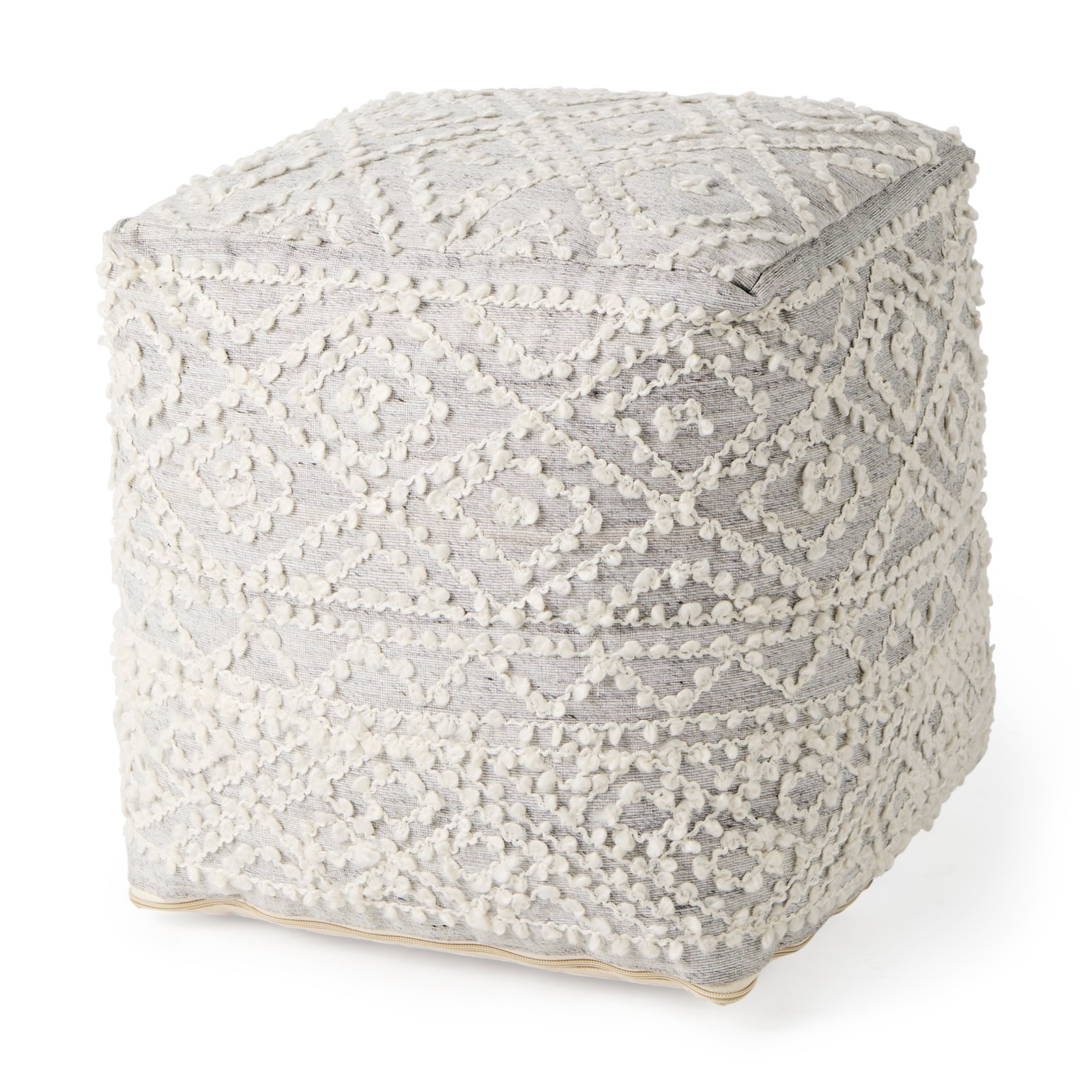 Farida 6.0L x 16.0W x 16.0H Light Gray Wool and Polyester Patterned Pouf