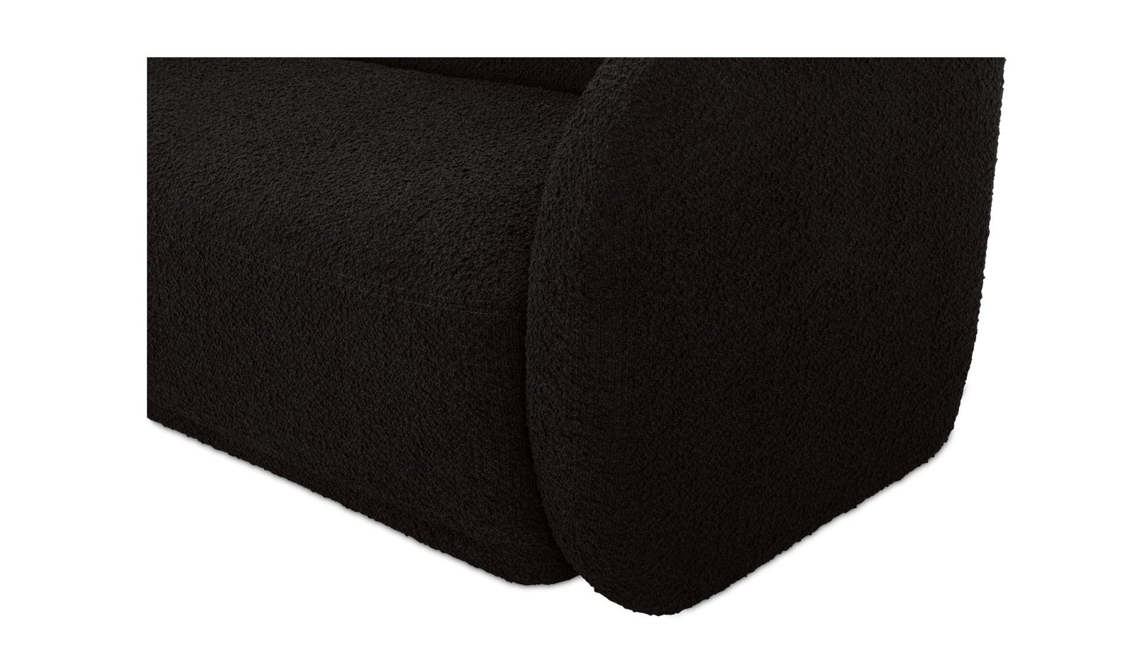 Constructed from solid beech and plywood the Faye sofa’s unique curved back and firm fixed bench seat rest on petite rounded rubberwood legs. The exaggerated boucle fabric has a robust 100 000 rub count bringing depth and an art deco feel to its contemporary form–a touch of elegance to expansive living.. Dimensions: 92.0? W X 35.0? D X 29.0? H