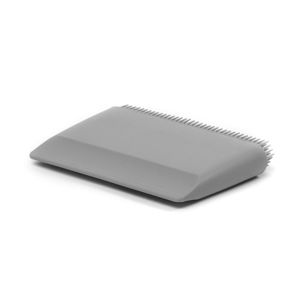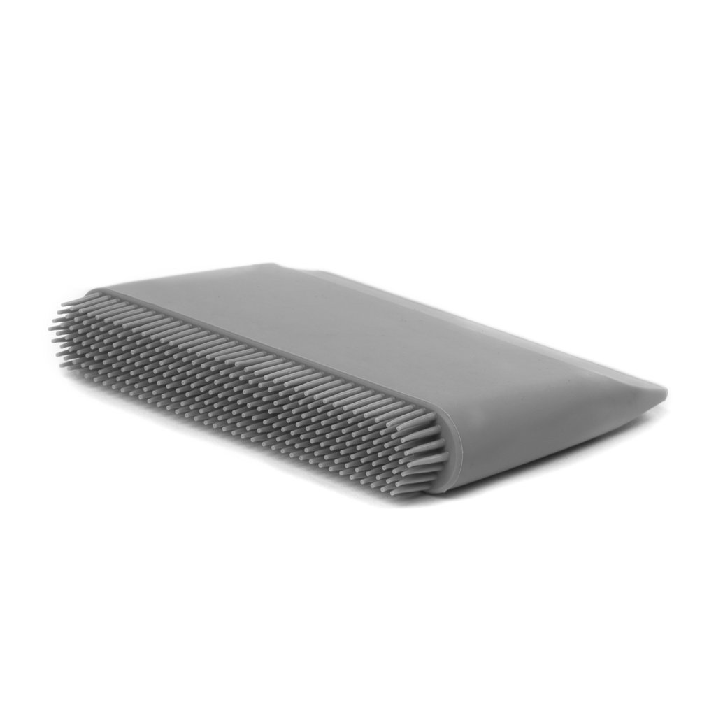 Kiss bathroom and kitchen sink messes goodbye. This unique cleaning tool combines a squeegee blade and soft brush to make removing wet and dry sink messes a breeze. Made of silicone the flexible squeegee makes it possible to clean both flat and curved surfaces such as sinks showers bathtubs and counters. Goodbye old sponges and wasted paper towels hello wonderfully clean spaces. Flex takes up minimal storage space; measuring 4 x 3 x 0.5 inches. (10 x 7.5 x 1 cm). Dimensions: 4″ (10cm)L x 0.63″ (2cm)W x 3″ (8cm)H