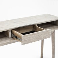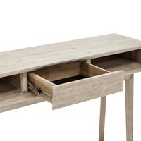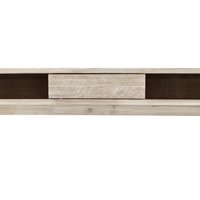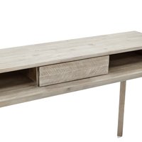 Made from solid acacia wood and MDF acacia veneer. . Steel brushed texture and light driftwood finish. . European drawer hinges. . Dimensions: 55 x 13.8 x 31.8 ; 47lbs