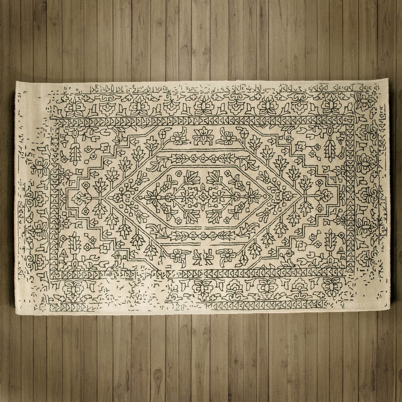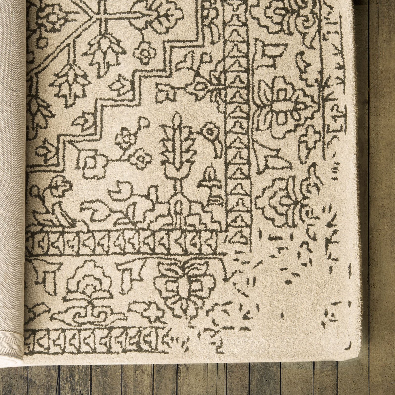 Gideon II 120 x 96 Beige Wool and Cotton Latex Backing Patterned Rug