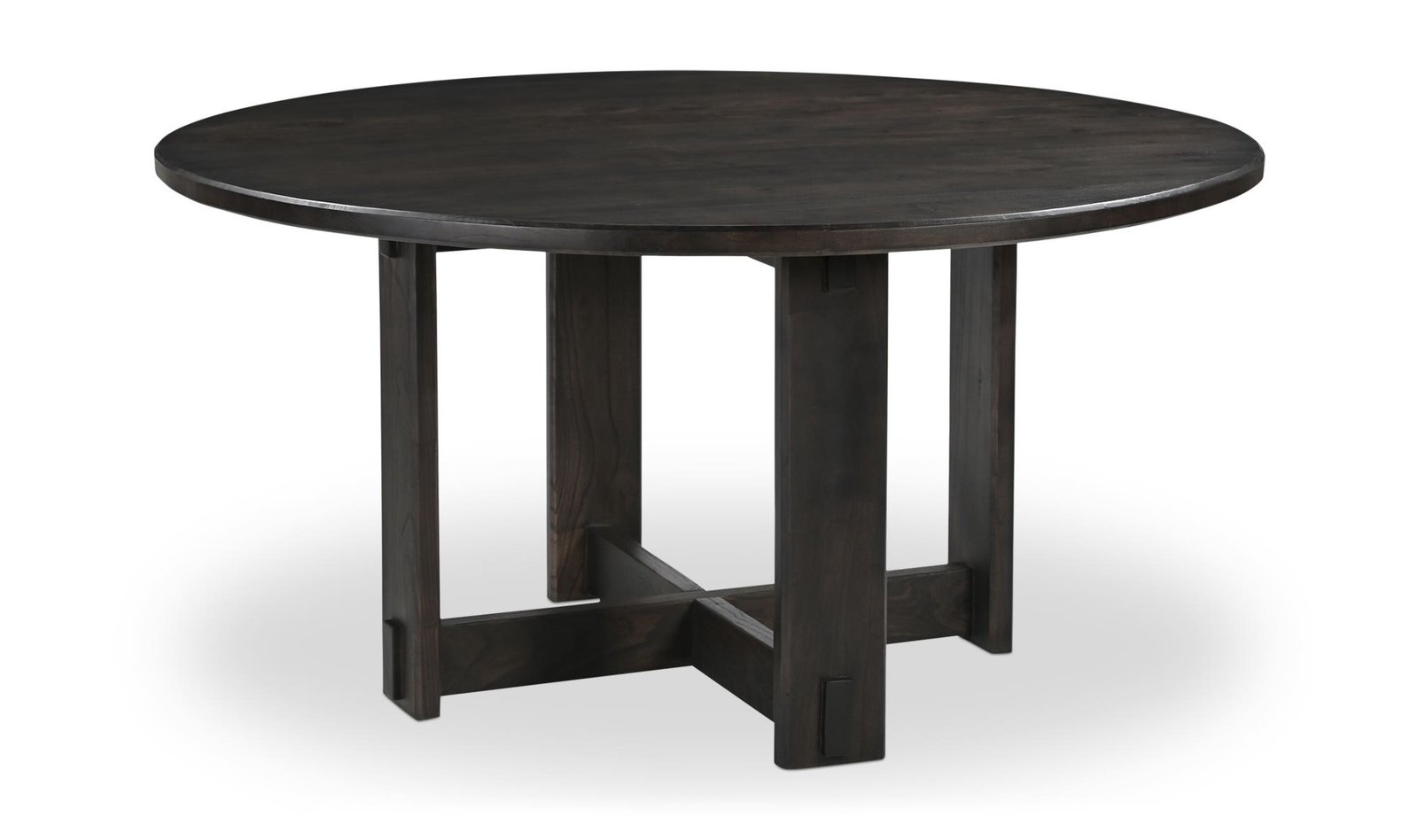 The Glenn Round dining table makes an exquisite statement with meticulous joinery detailing a thick tabletop with beveled edges and an oval shape. Crafted from durable solid neem wood with a matte finish it features a functional structure bar for stability merging robust craftsmanship with a balanced timeless appeal.. Dimensions: 60.0? W X 60.0? D X 30.0? H