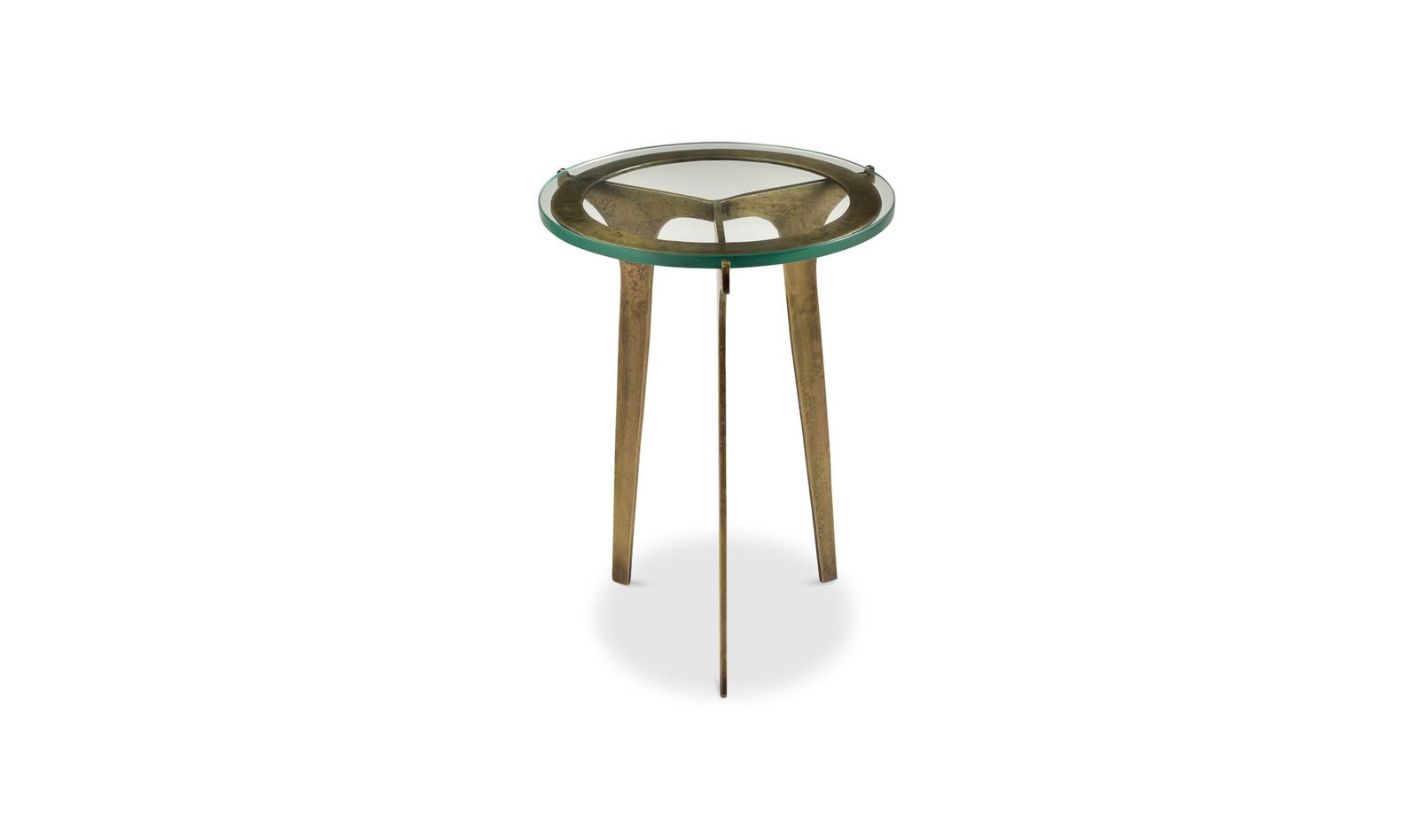 Made in an antique-brass finished iron the Halvorsen has a glass top that shows off the fresh metalwork of this classy accent table.. Dimensions: 17.0? W X 17.0? D X 21.0? H