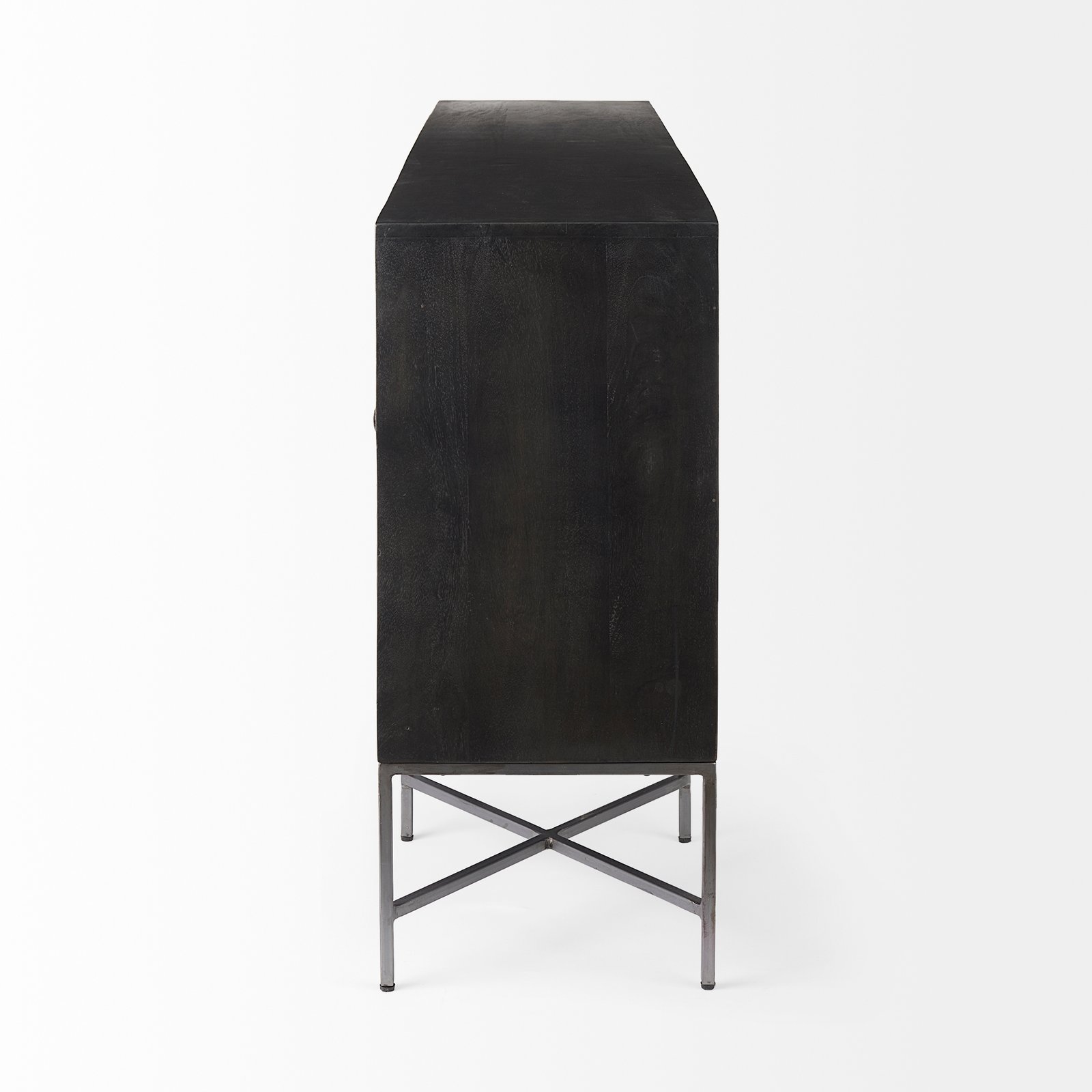 Exceptionally crafted from premium Indian mango wood the Hogarth I is a spectacular sideboard?that is guaranteed to elevate your dining room. Finished in a two-tone medium and dark brown palette the Hogarth I features?four cabinets that flaunt a stunning diamond pattern on the door fronts that is sure to catch your eye from any corner of the room. Braced by a rustic silver-toned iron base the Hogarth I makes for a sturdy and substantial addition to any dining area especially in spaces based on the Mid-Century Modern or Tropical design styles.. Dimensions: 15.0L x 72.0W x 35.0H