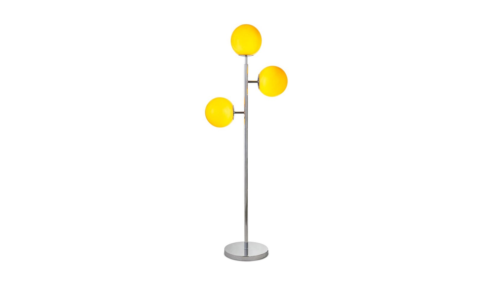 The Ida floor light elegantly intertwines vintage charm with polished modernity. Its opaque shade is drenched in an ambrosial amber that projects an intimate luminance. Adorned with polished silver detailing and a minimalist base with three different heights to the globes it encapsulates a nostalgic essence rendered with contemporary finesse?a moody illumination of measured craftsmanship.. Dimensions: