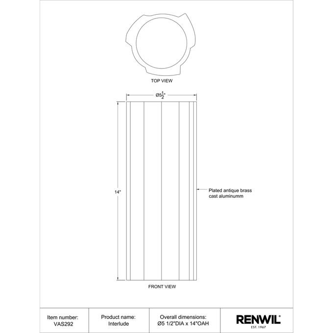 VaseCast AluminumPlated Antique Brass FinishDecorative OnlyNet Weight: 5.9lbs.Gross Weight: 9lbs.. Dimensions: