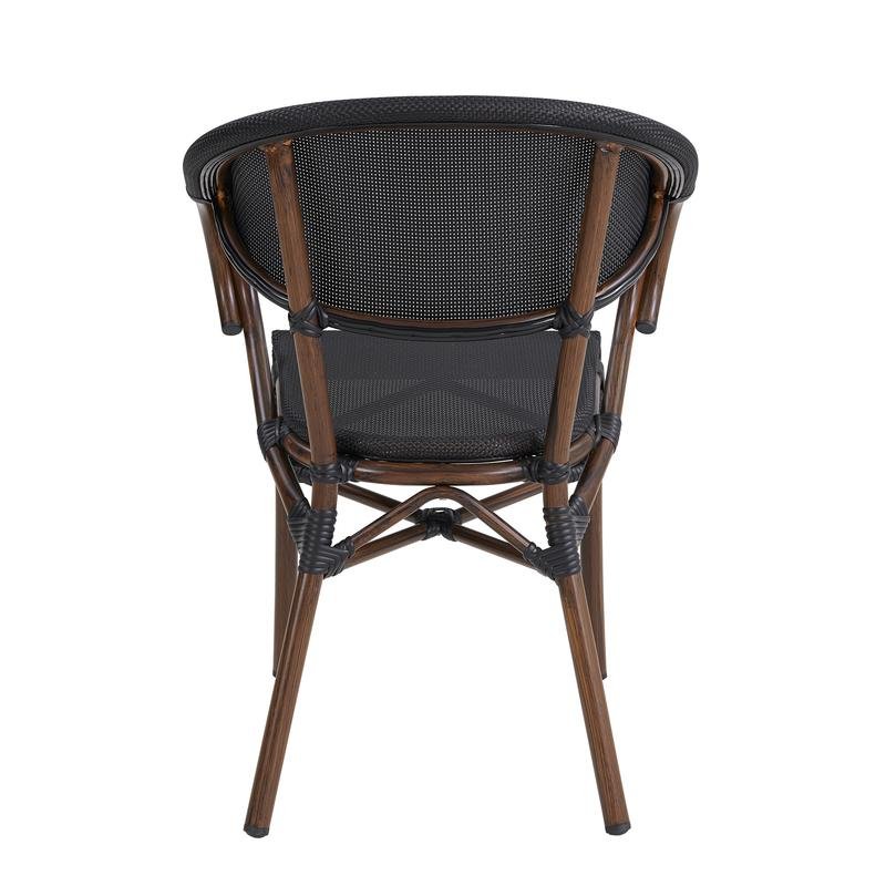 Jannie Stacking Armchair in Black Textilene Mesh with Brown Frame