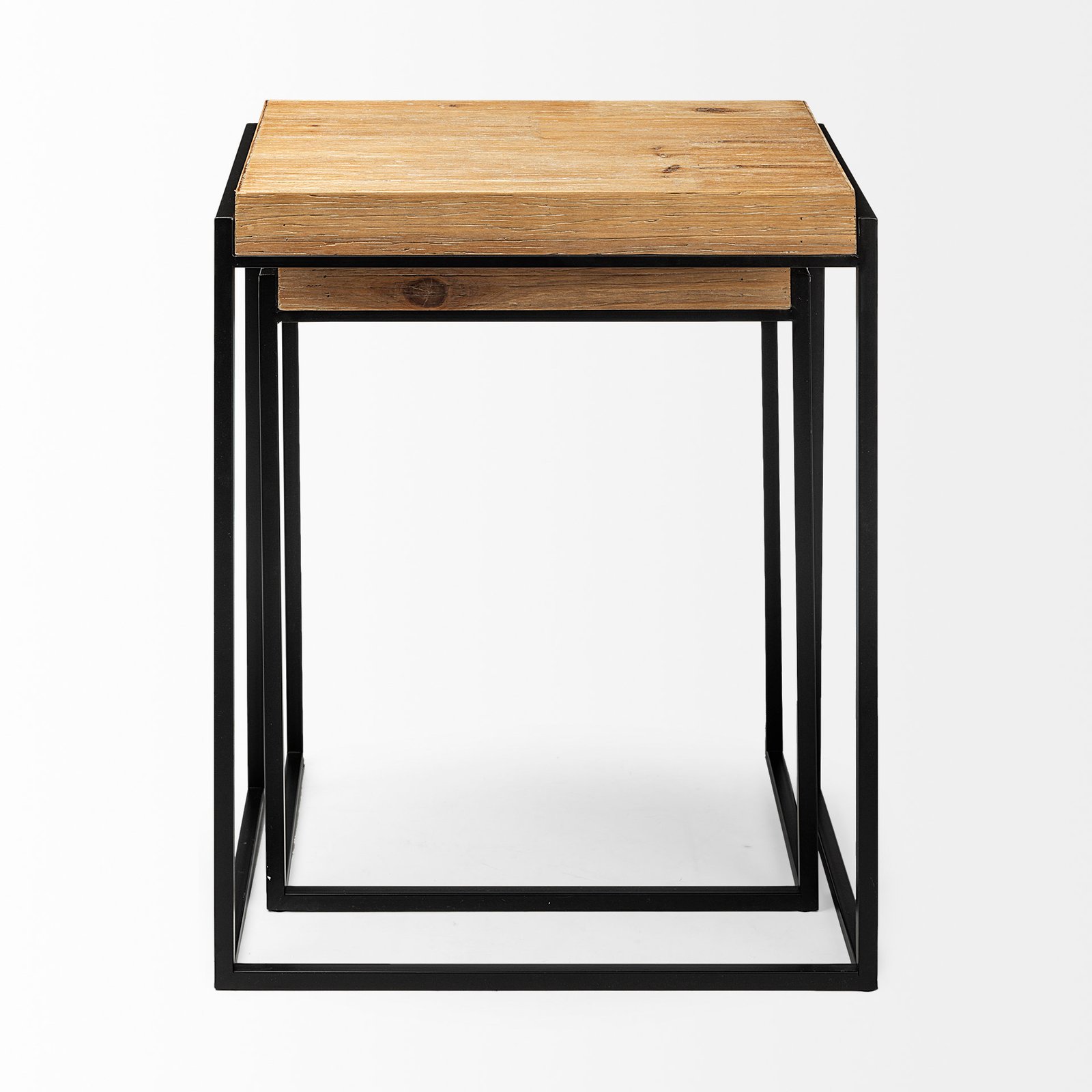 Karissa (Set of 2) 19.3L x 13W x 24.8H Light Brown Wood Top W/Black Metal Base Nesting Accent Tables