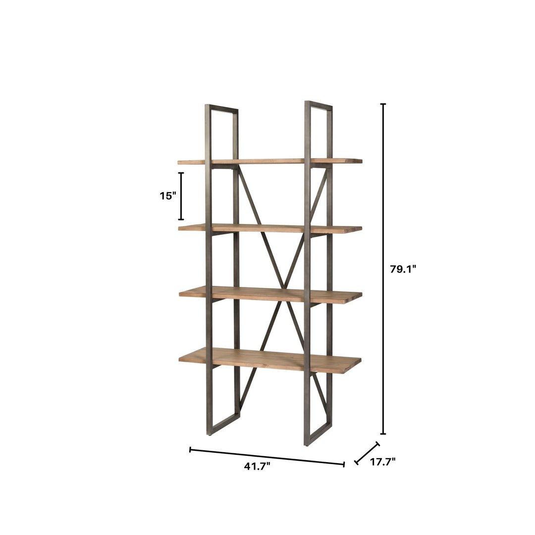 Available in 2 sizes. Solid Pine Wood. Metal Frame. Made from recycled pine . Metal frame for durability . 15″ inbetween shelves . Dimensions: 41.7 x 17.7 x 79 ; 70lbs