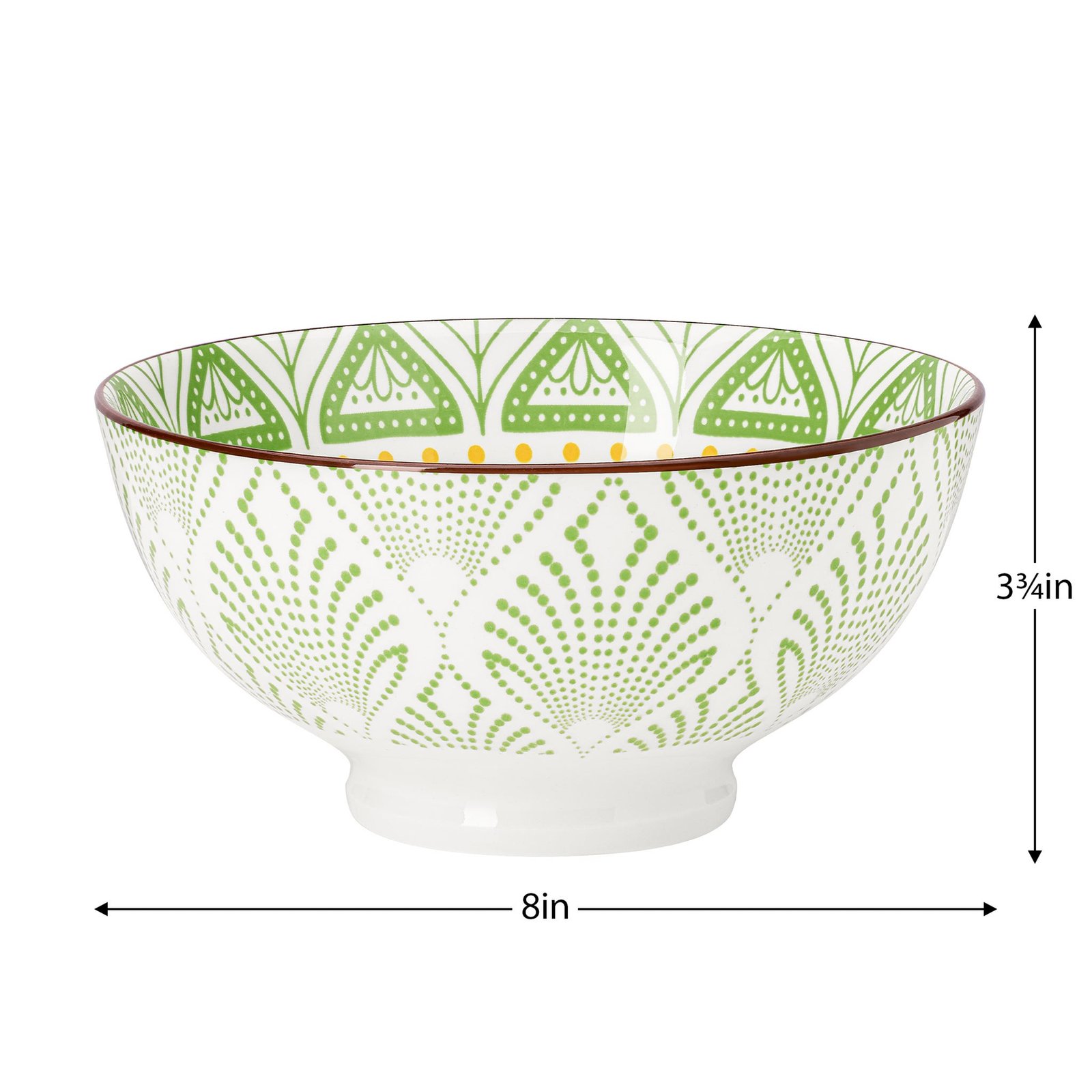 Kiri Porcelain 56 oz. 8 Inch Diameter Bowl – Green Lotus