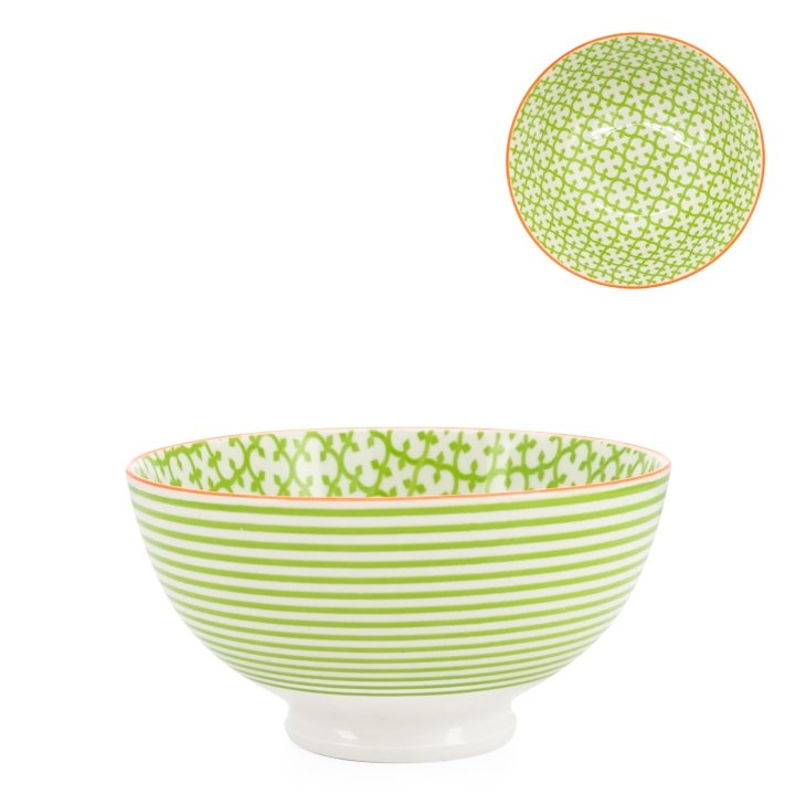 Kiri Porcelain 6″ Medium Bowl – Green Stripe Filigree