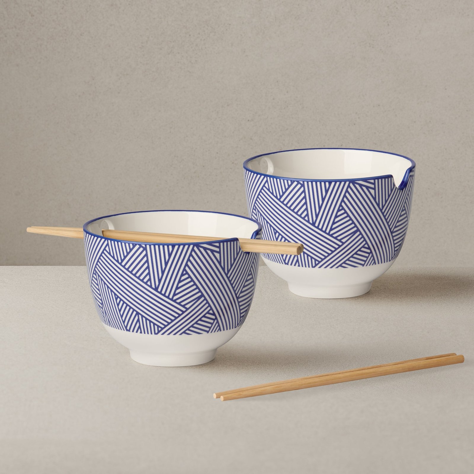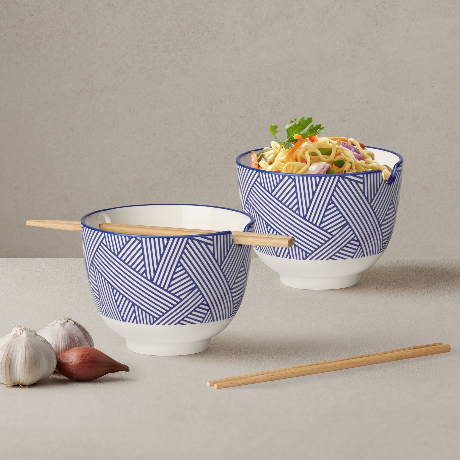 Kiri Porcelain Two Piece 5 Inch Diameter Noodle Bowl with Chopsticks Set – Blue Zen Weave