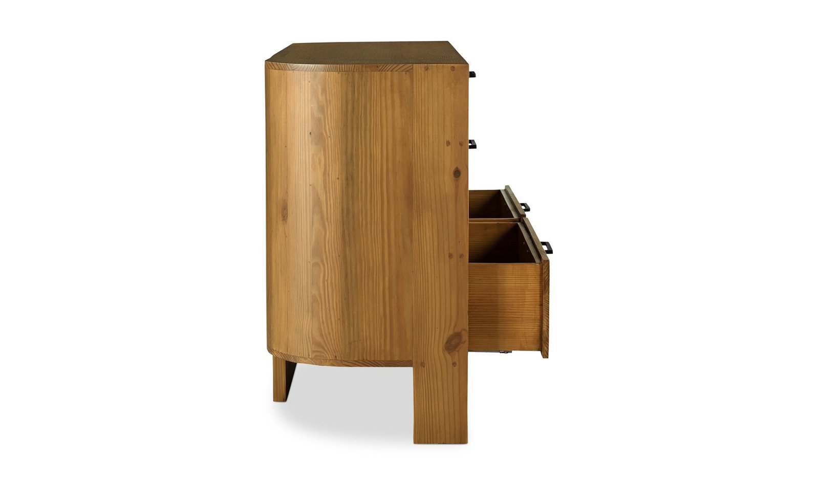 The Lachlan 6 drawer dresser adds a fresh twist to mid-century and Scandinavian aesthetics with its unique three-legged design and gently curved back. Crafted from pine it features visible joinery for a touch of artisanal charm punctuating its floating silhouette. The dresser has 6 soft-close drawers and is finished on all sides ensuring both function and versatility go along with its sleek modern lines.. Dimensions: 58.0? W X 19.0? D X 33.75? H