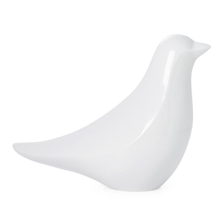 An oversized polystone bird is finished with a shiny white lacquer making it a great statement piece inside or out. Dimensions: 22 x 8.5 x 14h