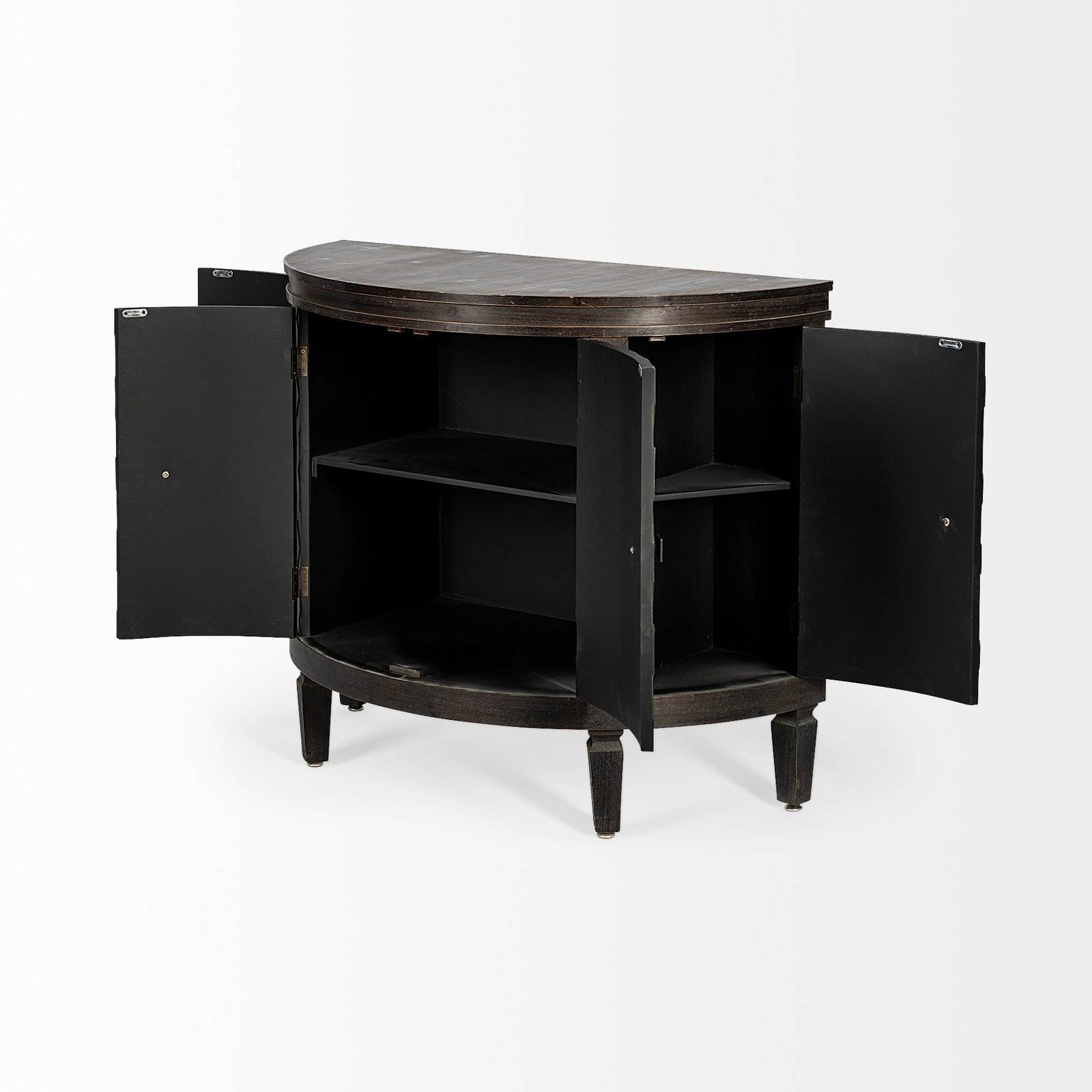 Lennon 39L x 19W Dark Brown Fir Veneer 4 Door Demilune Accent Cabinet