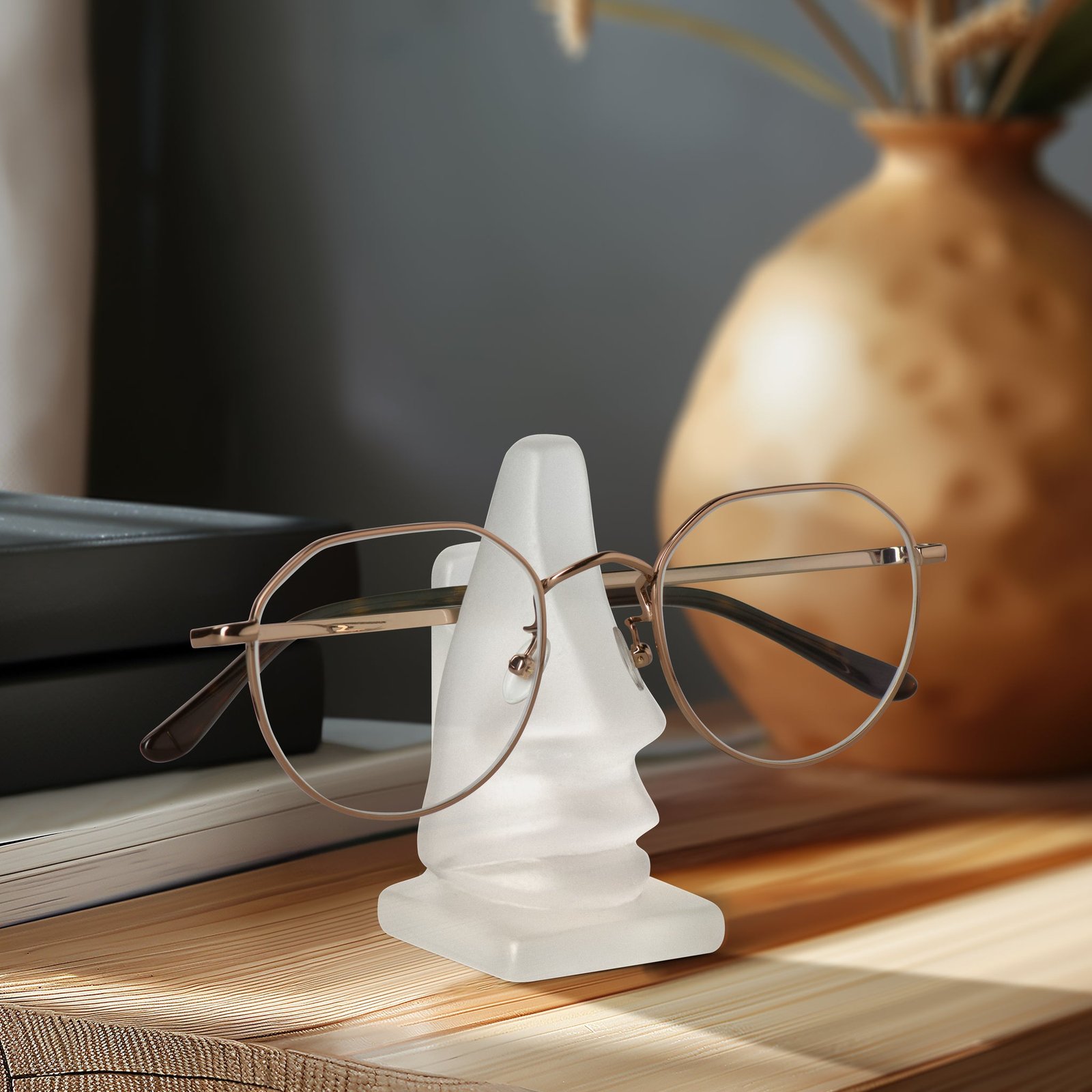 Keep your eyeglasses close and secure with this playful polyresin holder. Designed so your glasses rest comfortably on the nose it doubles as a fun and quirky display piece. Comes gift boxed—perfect for adding a touch of whimsy to any space or gifting to someone special. Dimensions: 1.25 inch length x 1.25 inch width x 3.5 inch height