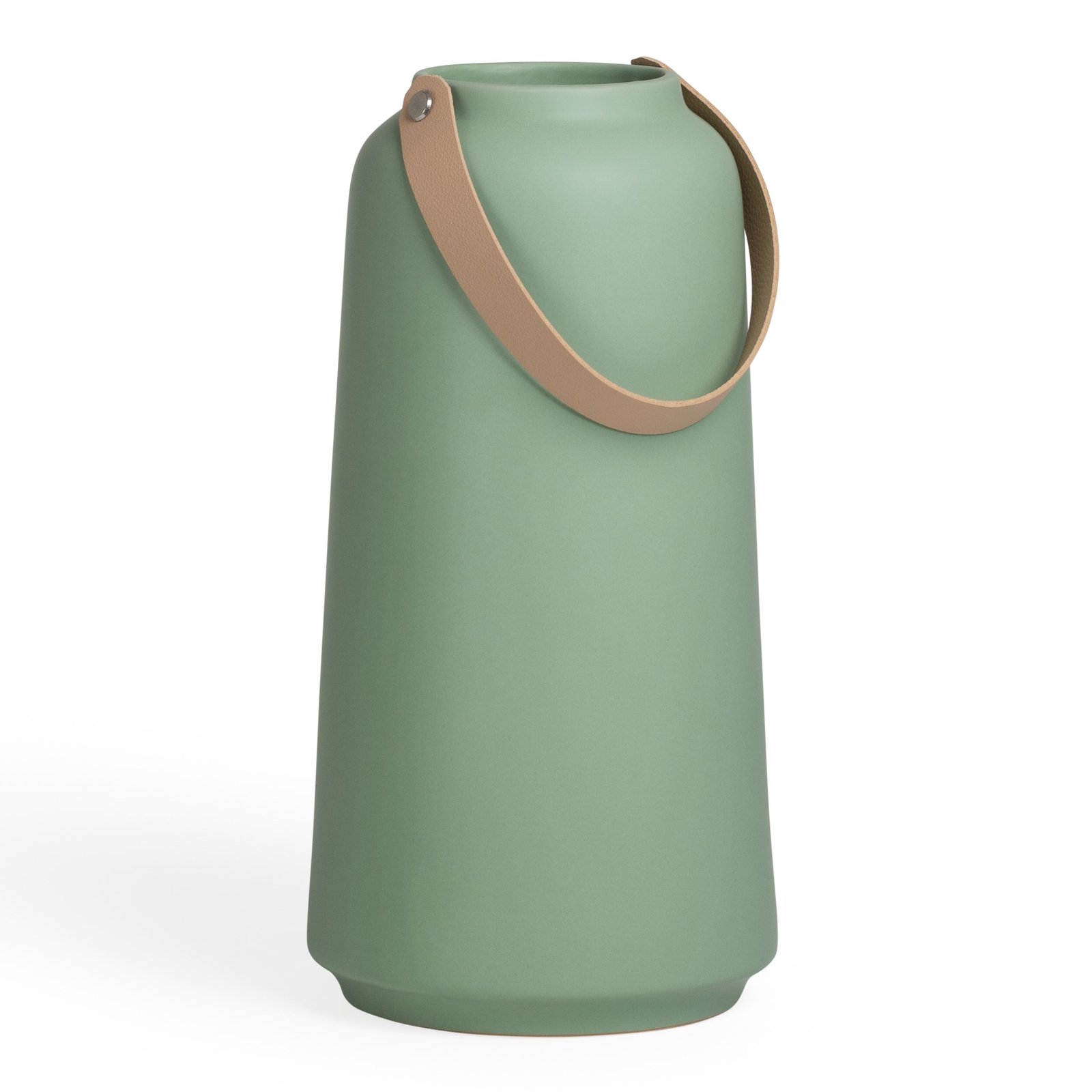 Lido Matte Green Ceramic 11 Inch Tall Tapered Vase with Faux Leather Handle