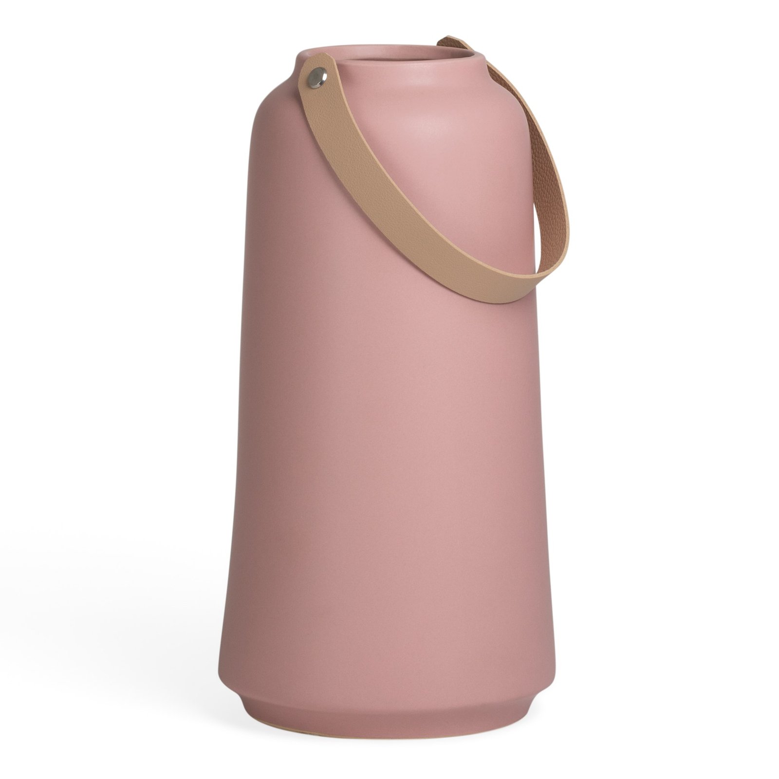 Lido Matte Pink Ceramic 11h” Tapered Vase with Faux Leather Handle