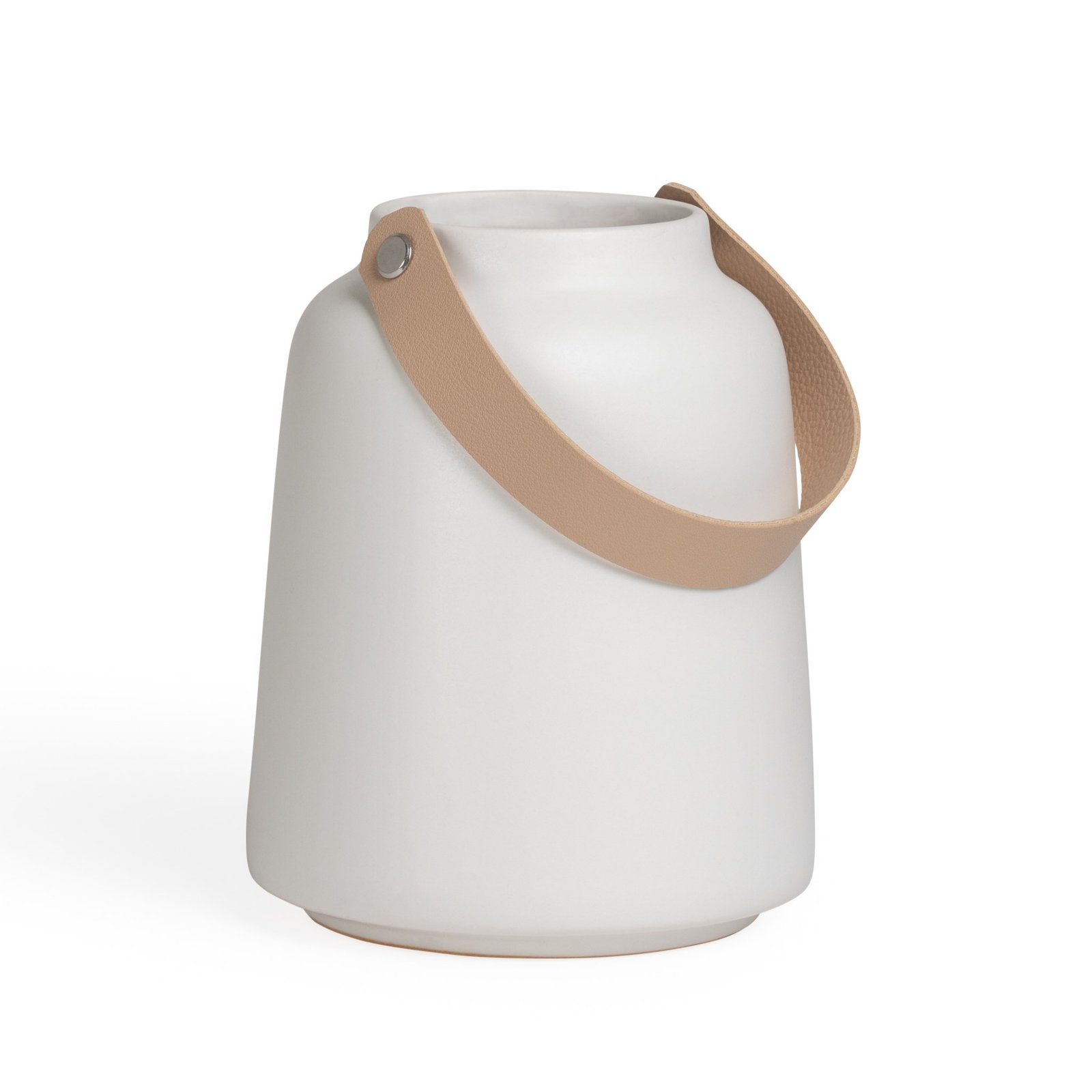 Lido Matte White Ceramic 6 Inch Tall Tapered Vase with Faux Leather Handle