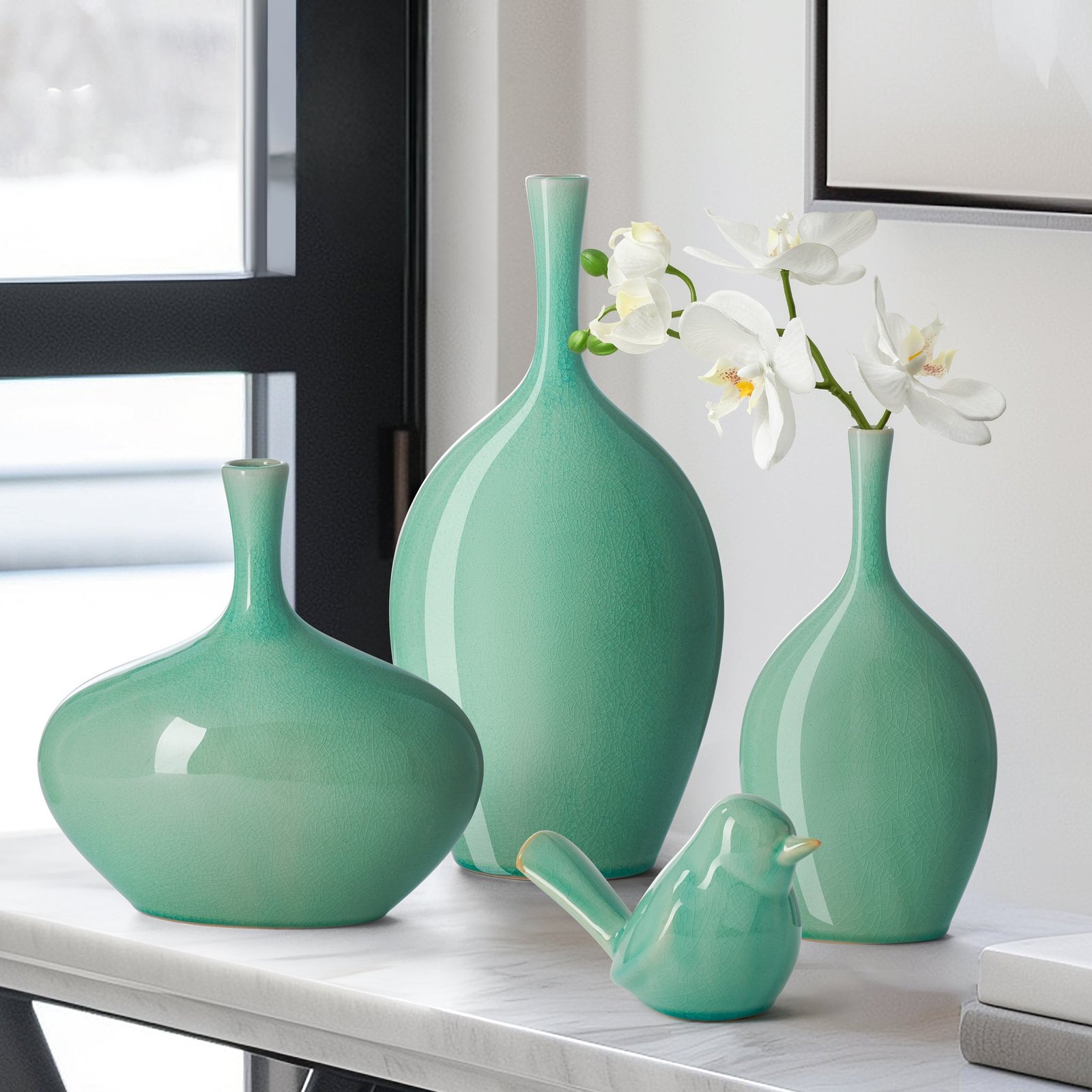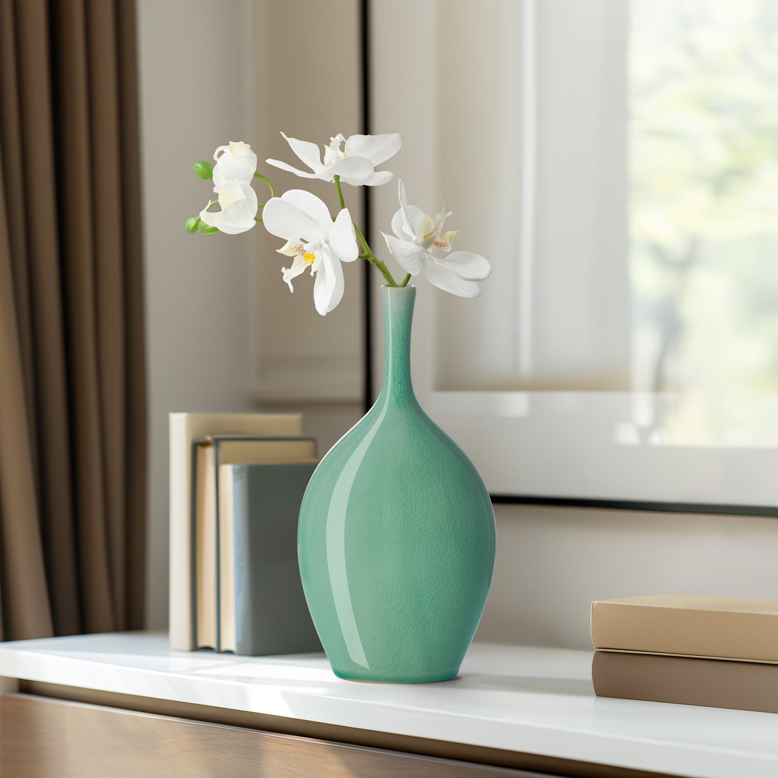Lilo Celadon Crackle Ceramic Vase – 8.75 Inch Tall