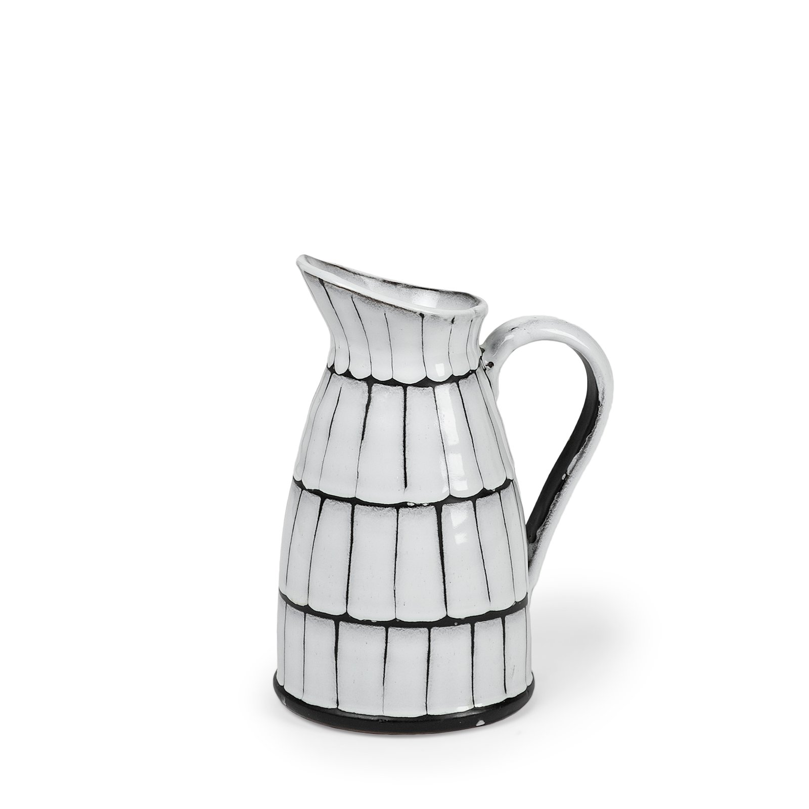 The Lome is a stunning decor accessorie shaped like a water pitcher. Intricately crafted from ceramic and finished in a white tone with a square block pattern on it the Lome looks fabulous in spaces based on the Enduring Elegance or Global Curiosities design styles.. Dimensions: 7.7L x 5.9W x 10.0H